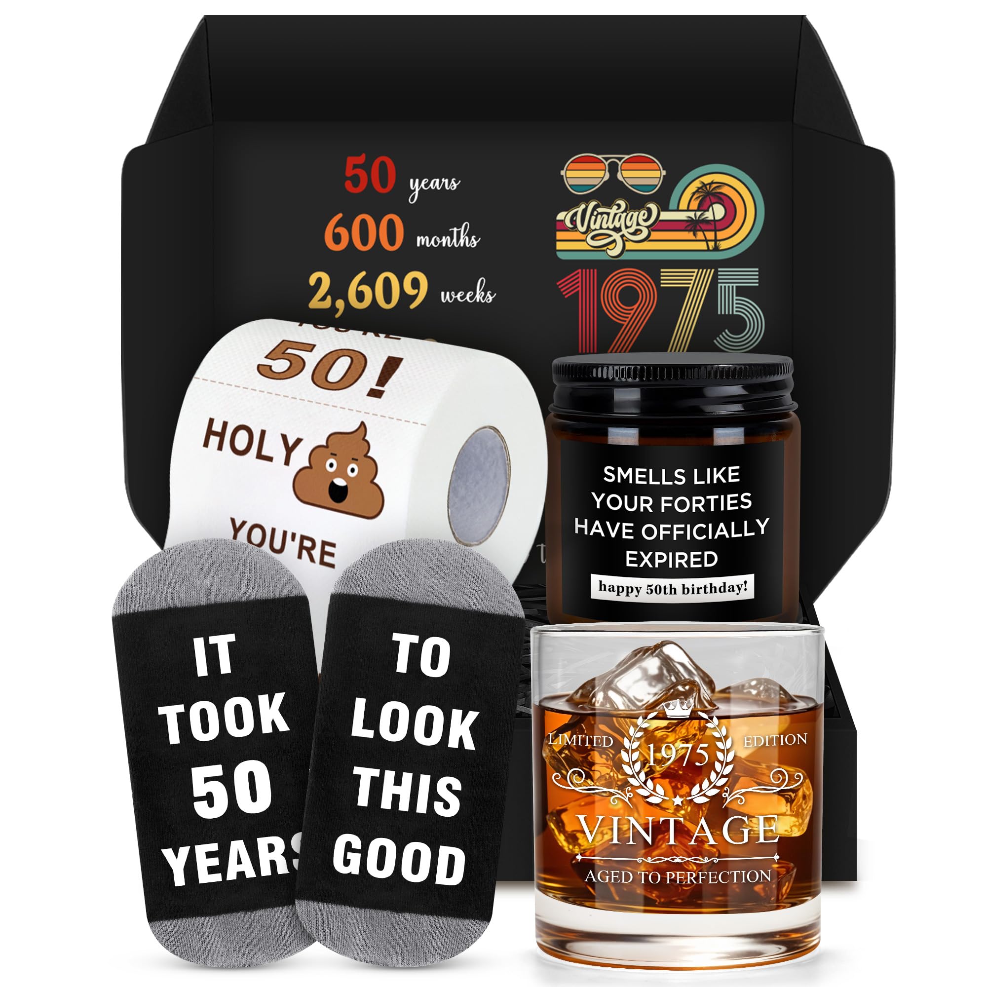 Pradnel 50. Geburtstagsgeschenke für ihn Coole Geschenke für den 50-jährigen Mann Alles Gute zum 50. Geburtstag Dekorationen für Männer Vintage-Weinglas von 1975 Toilettenpapierrolle Witzige Socken Lustige Geschenkideen zum 50. Geburtstag für Männer