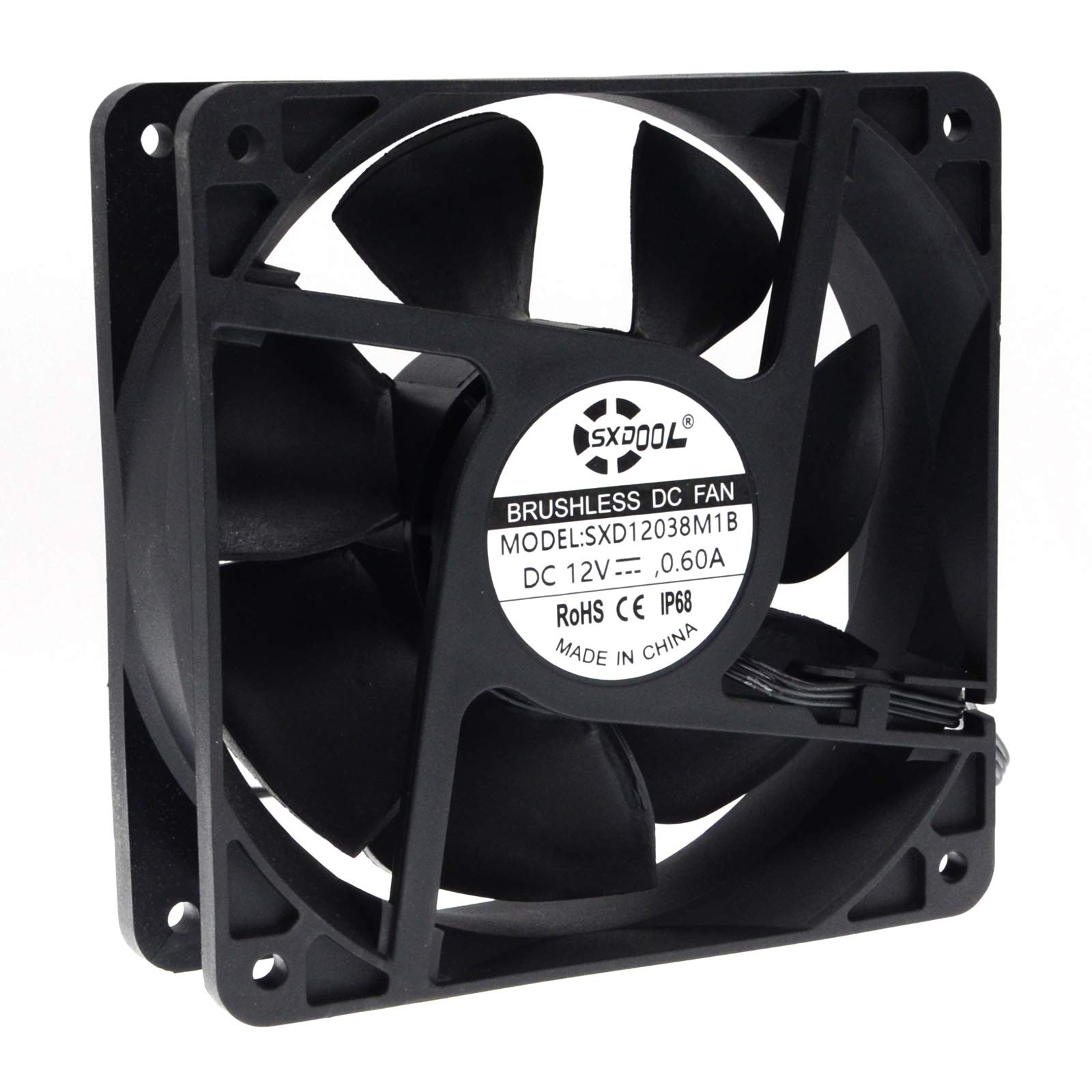 SXDOOL 120 mm (120 x 120 x 38 mm) Hochgeschwindigkeits-Lüfter, wasserdicht und staubdicht, 12 V, Doppelkugellager, 3600 U/min