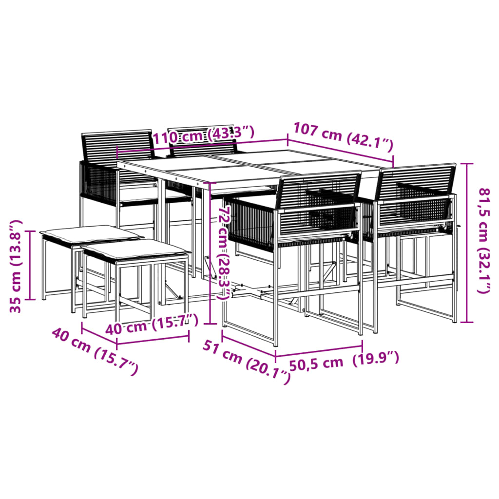 9-tlg. Garten-Essgruppe mit Kissen Schwarz Poly Rattan