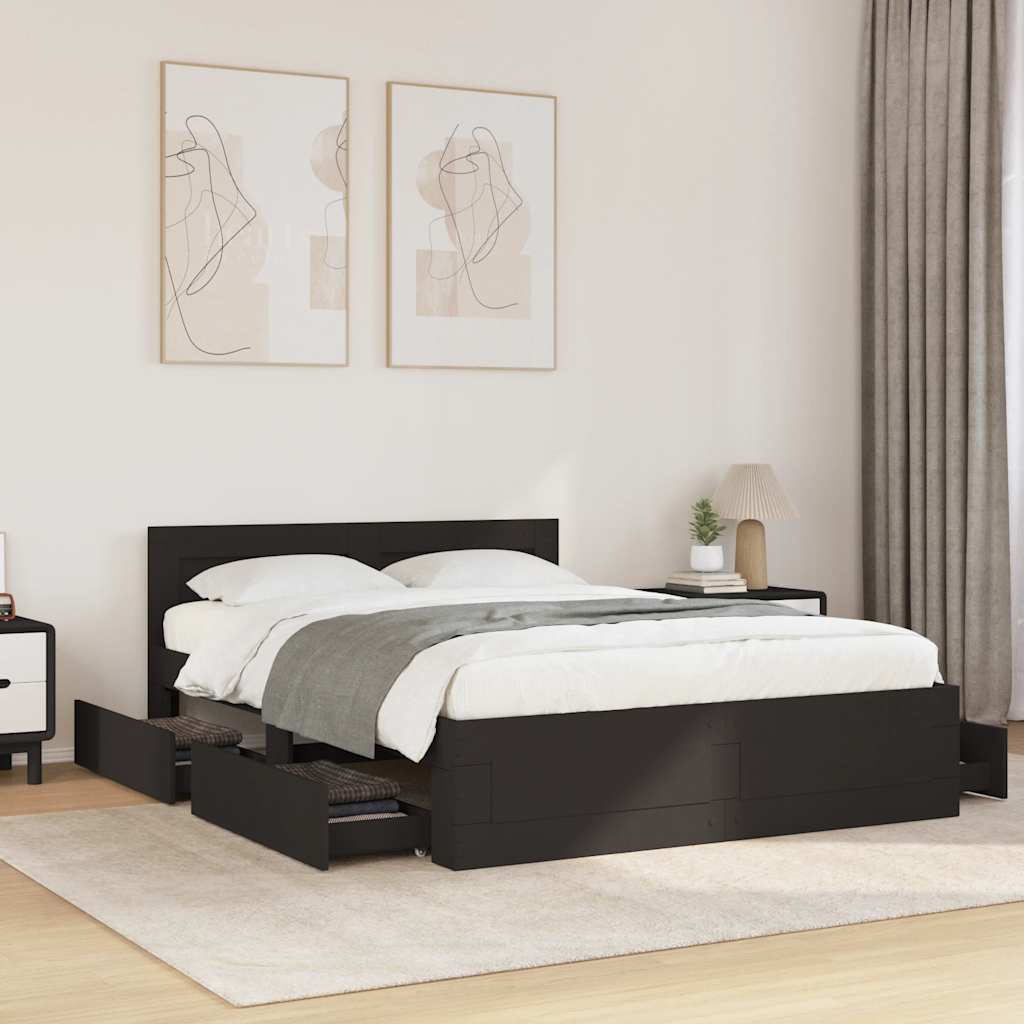 Bettgestell mit Kopfteil ohne Matratze Schwarz 140x200 cm