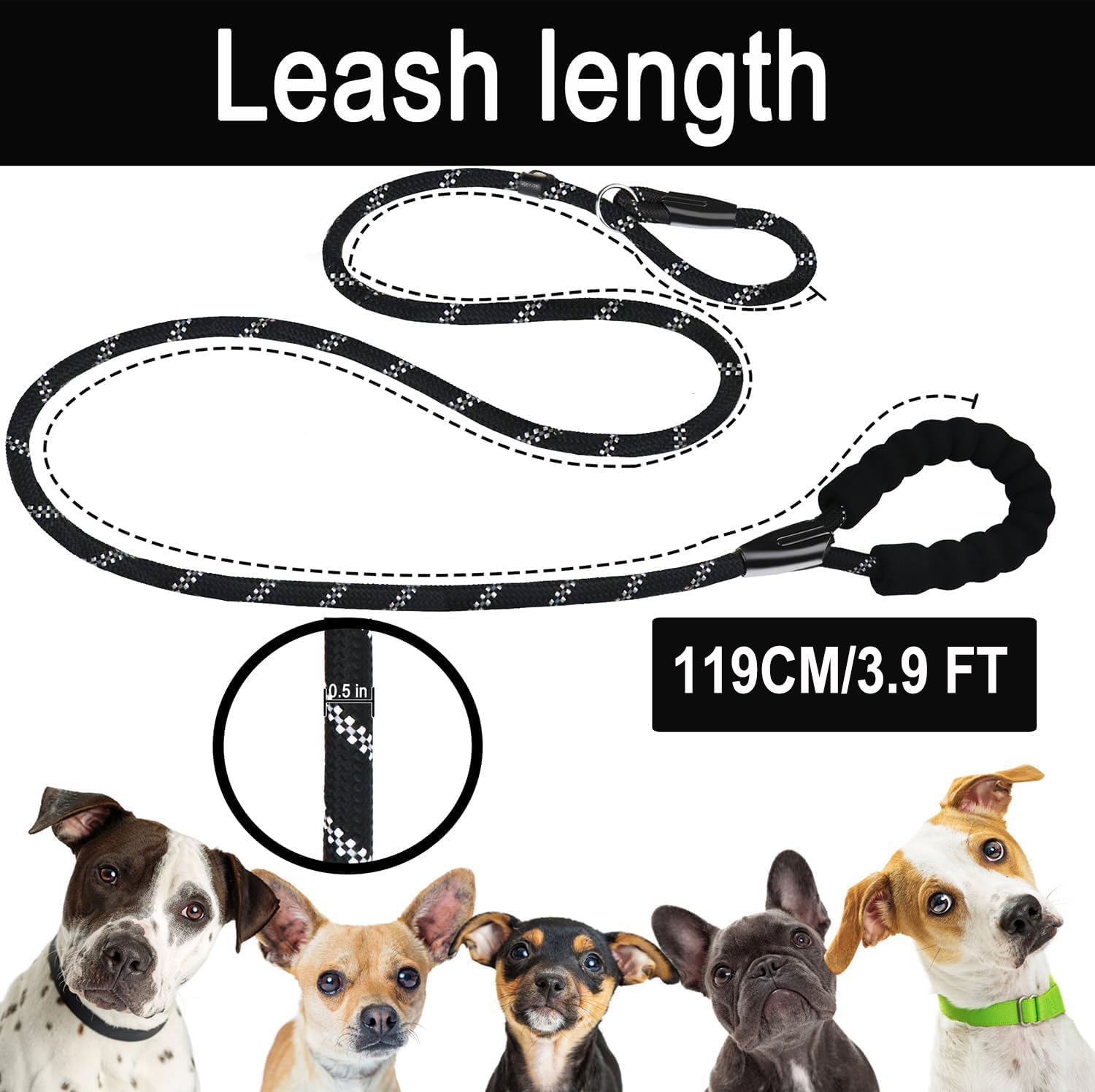 Hundeleine, 1,8 m lange, robuste Hundeleine, strapazierfähige Premium-Qualität, starke Seil-Schlupfleine mit komfortablem, gepolstertem Griff und hochreflektierenden Fäden für kleine, mittlere und große Hunde, (Schwarz)
