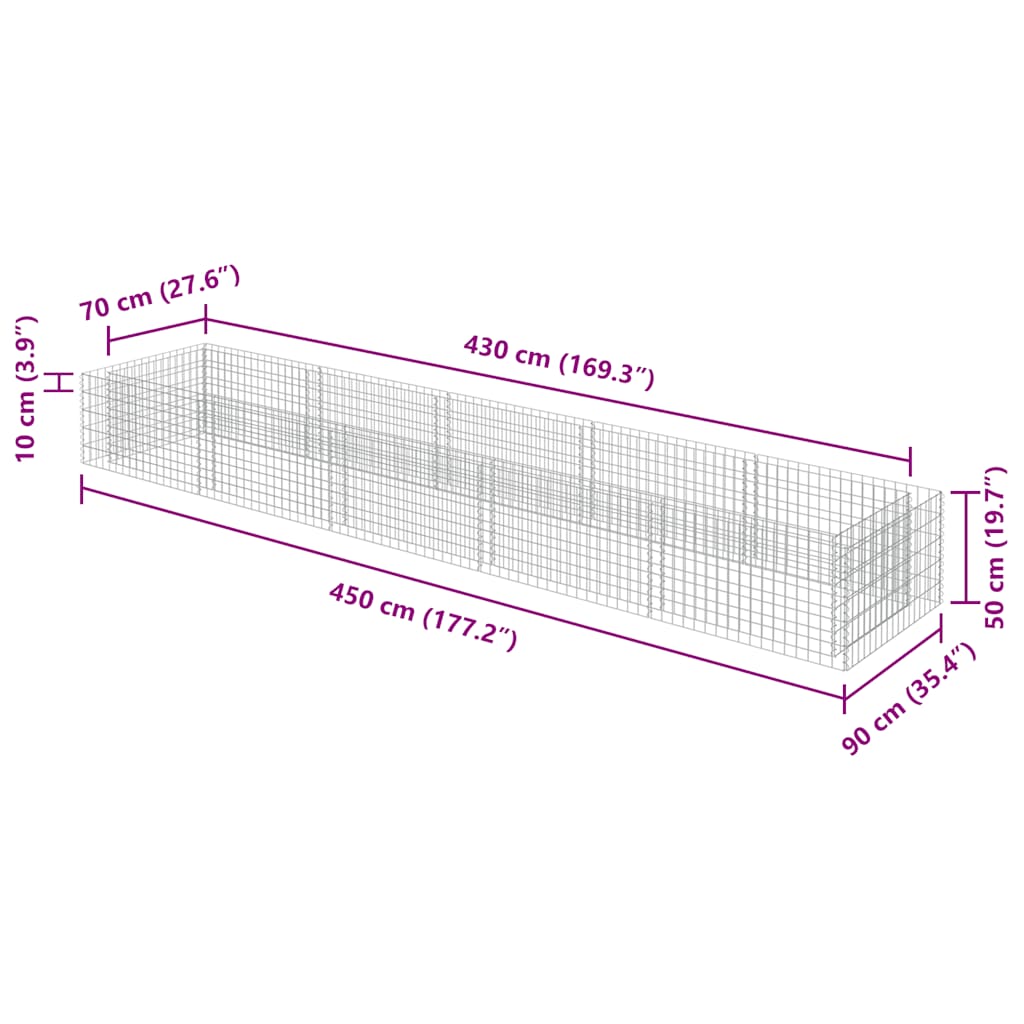 Gabionen-Hochbeet Verzinkter Stahl 450×90×50 cm