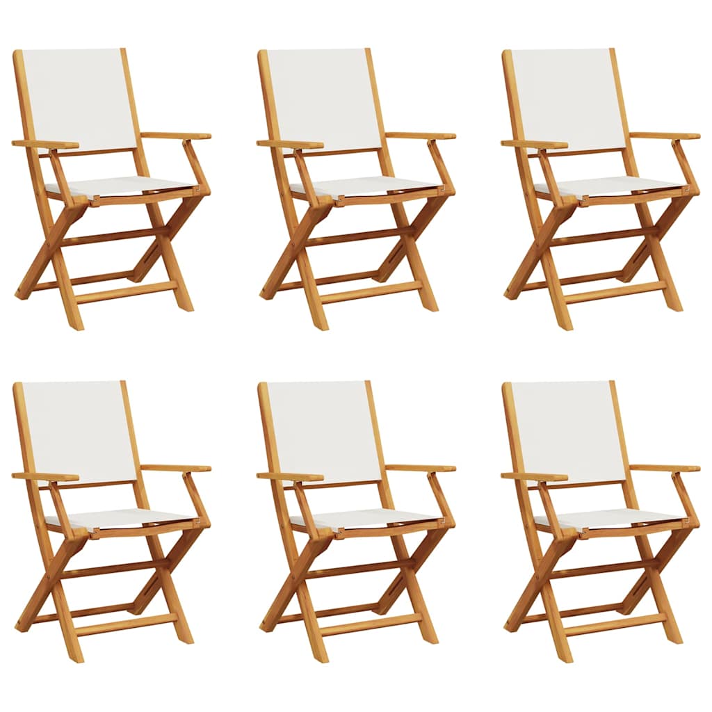 Gartenstühle 6 Stk. Klappbar Cremeweiß Stoff und Massivholz