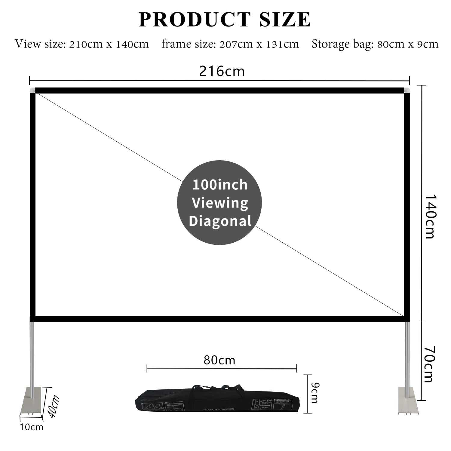 100 Zoll (254 cm) große, 16:9 HD 4K-Projektionsleinwand mit Ständer für Heimkino, 3D, schnell faltbar, tragbar, inklusive Ständer und Tragetasche, knitterfrei