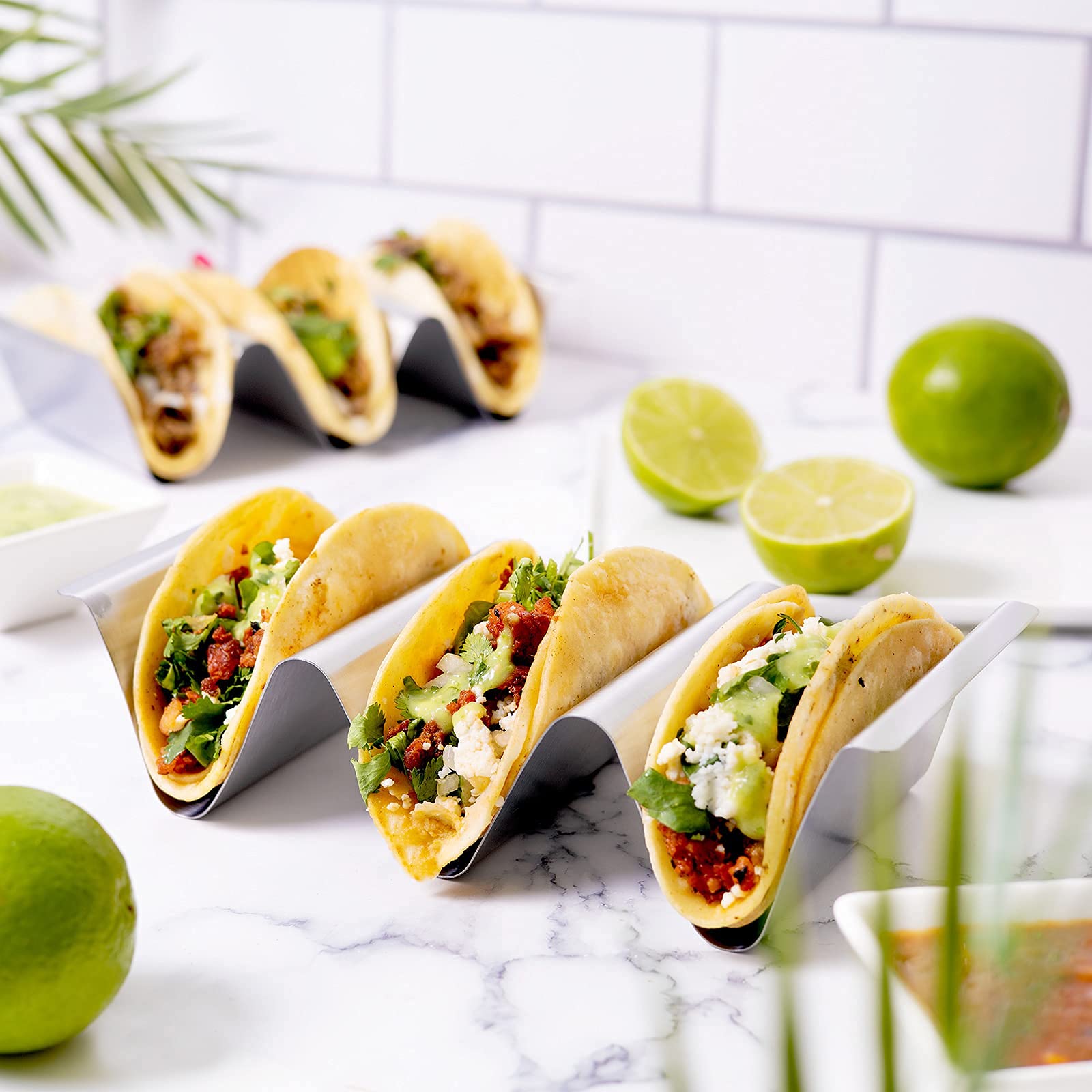 Taco-Ständer aus Edelstahl, 6er-Set – Stilvoller Ständer für bis zu 3 Tacos, hält die Schalen aufrecht – Ofen-, grill- und spülmaschinenfest