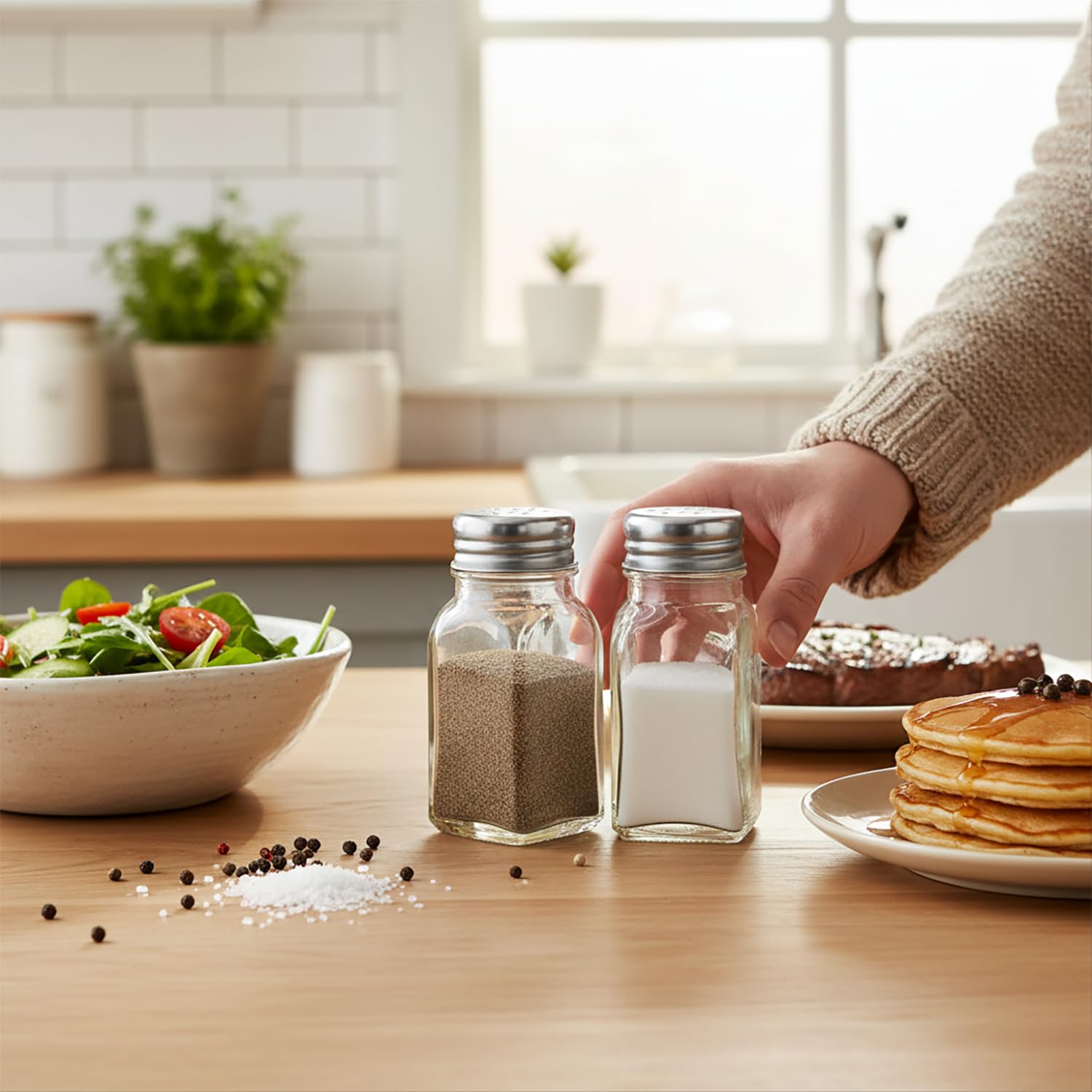 Bereichern Sie Ihr Ess- und Wellnesserlebnis mit diesem vielseitigen Salz- und Pfefferstreuer-Set. Es wurde sorgfältig entworfen und passt perfekt in jede Küche, jedes Restaurant oder Bistro. Das Set besteht aus zwei transparenten Glasstreuern (je 60 ml) mit robusten Metalldeckeln – ideal, um Ihre Lieblingsgewürze griffbereit zu haben. Das transparente Design verleiht Ihrem Raum nicht nur einen eleganten, klassischen Look, sondern ermöglicht Ihnen auch, den Füllstand jederzeit im Blick zu behalten. Ob Himalaya-Salz, Koscher-Salz oder Knoblauchsalz – Sie wissen immer, wann Sie nachfüllen müssen. Diese Streuer eignen sich nicht nur für herkömmliches Speisesalz. Sie sind ideal für all Ihre Gourmet-Favoriten wie keltisches Meersalz, Maldon-Meersalzflocken, Baja Gold Mineral-Meersalz und Redmond Real Salt. Ob Sie fein gemahlenes Jodsalz oder die charakteristische Textur von Meersalzflocken bevorzugen – mit diesen Streuern gelingt Ihnen das perfekte Würzen Ihrer Gerichte. Kombinieren Sie sie mit Ihrer Salz- und Pfeffermühle oder steigen Sie auf ein elektrisches Salz- und Pfeffermühlen-Set um – für ein rundum gelungenes Küchenerlebnis. Von klassischen Gewürzen bis hin zu Gourmetgerichten – diese Streuer eignen sich perfekt für rosa Himalaya-Salz, schwarzes Salz, Popcorn-Salz und sogar besondere Sorten wie blaues Salz für Männer. Kompakt und funktional sind sie die ideale Wahl für Küchen mit wenig Platz, aber viel Geschmack. Ihr zeitloses Design macht sie zu einer stilvollen Alternative zu sperrigen Salzmühlen und vereint Komfort und Eleganz am Tisch. Auch abseits der Küche fügt sich dieses Set nahtlos in Ihren Alltag ein. Ob Sie zum Mittagessen Chips mit Salz und Essig genießen, sich mit einem Bad mit Bittersalz entspannen oder Ihr Wohlbefinden mit natürlichen Elementen wie einer Himalaya-Salzlampe oder Bio-Heilmitteln mit keltischem Salz steigern möchten – diese Streuer helfen Ihnen, die Essenz von Salz in Ihre täglichen Rituale zu integrieren. Und wenn Sie die vielfältigen Vorteile von Produkten mit Salz schätzen, bietet dieses Set alles, was Sie brauchen – von Pflegeprodukten wie Meersalzspray für Männer, Meersalzspray für die Haare und Körperspray mit Salz und Stein bis hin zu unverzichtbaren Hautpflegeprodukten wie Deodorant und Duschgel mit Salz und Stein für Frauen. Es ist mehr als nur ein Gewürzstreuer – es ist ein kleines, aber feines Accessoire für alle, die Salz lieben. Ob Sie sich mit Grundnahrungsmitteln wie echtem Salz, Maldon-Salz und Bio-Keltischem Salz eindecken oder Ihre Wellness-Routine mit Navage-Salzkapseln und Bittersalz auffrischen möchten: Dieses klassische Streuer-Set vereint Funktion und Geschmack.