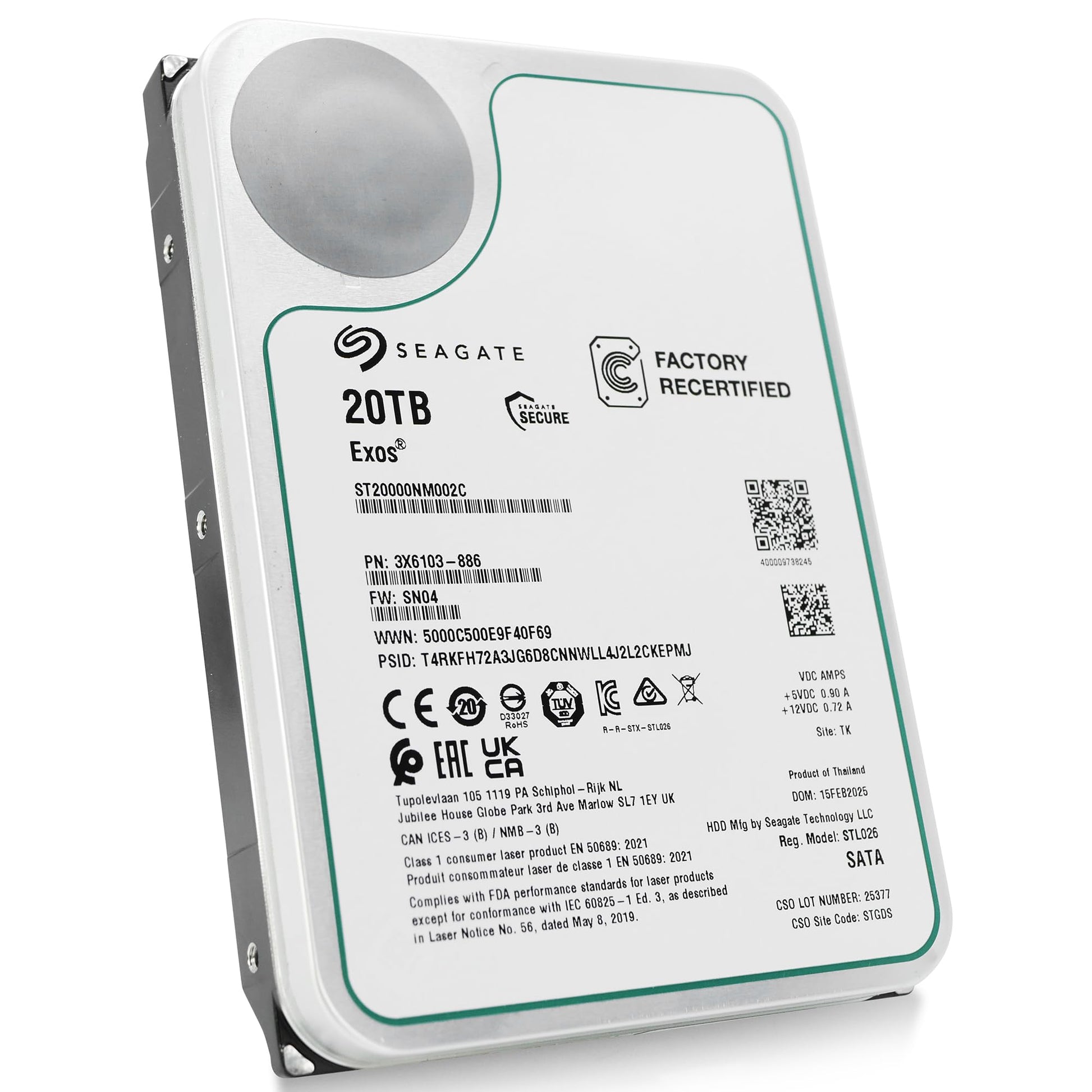 Seagate Exos 20 TB 7.200 U/min SATA 6 Gbit/s 3,5 Zoll Enterprise HDD ST20000NM002C (Generalüberholt)