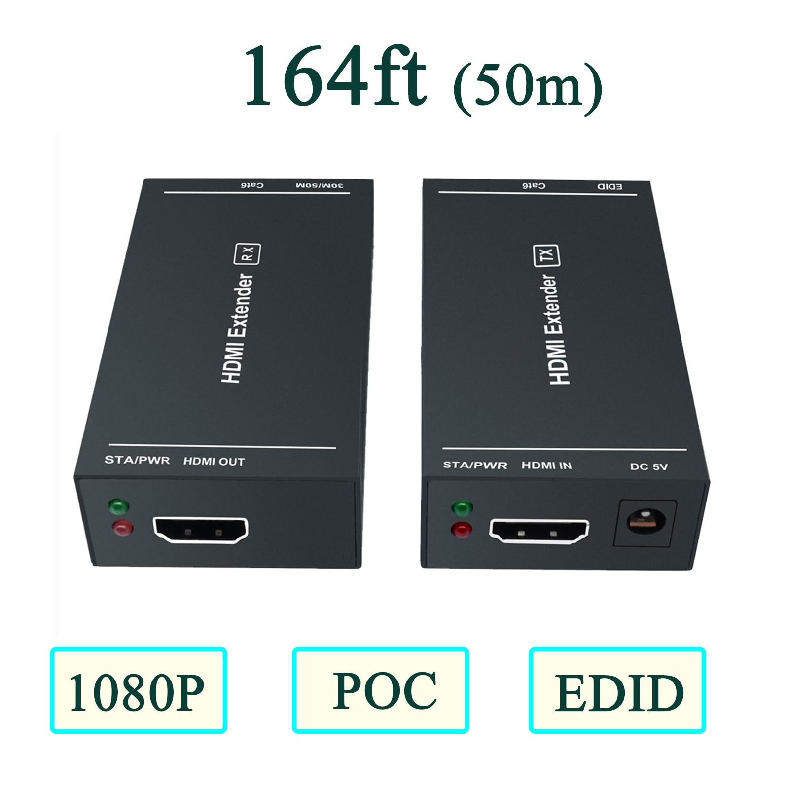 Steetek HDMI-Extender 1080p@60Hz, 3D, über ein einzelnes Cat5e/Cat6/Cat 7-Kabel, Full HD unkomprimierte Übertragung bis zu 50 m (164 Fuß), EDID- und POC-Funktion unterstützt (Sender und Empfänger)