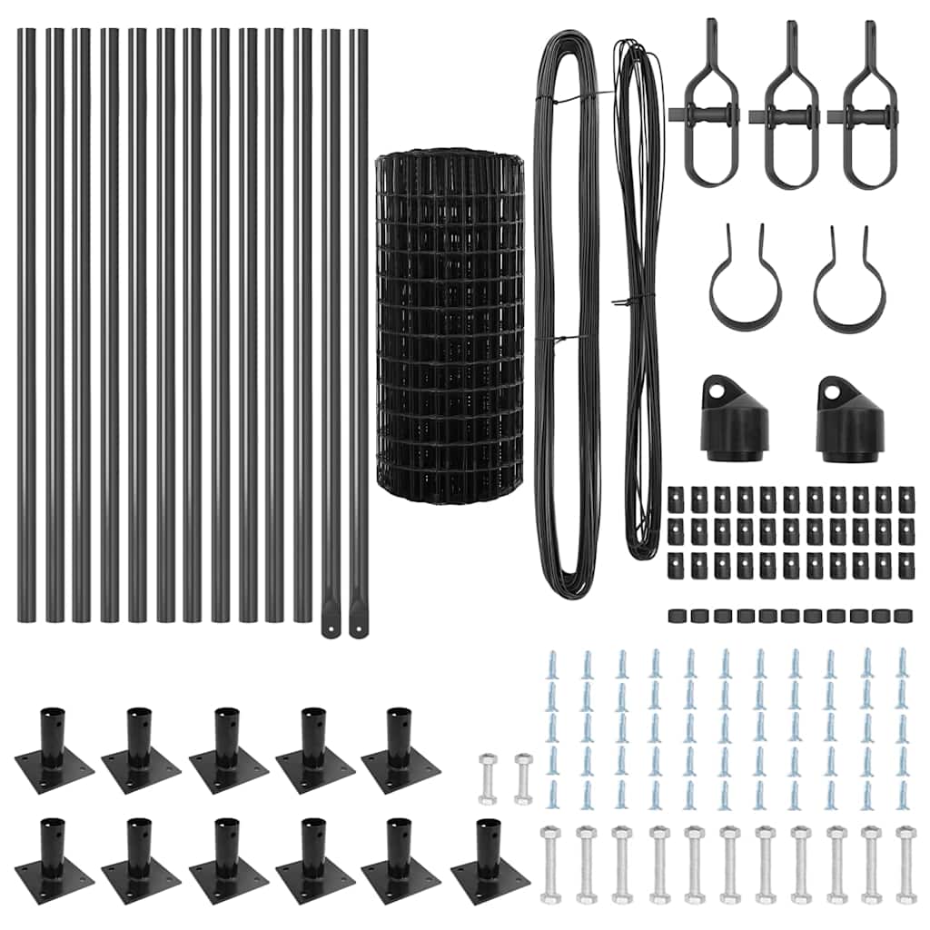 Zaun mit Pfosten Grau 0,4 x 25 m Stahl und PVC