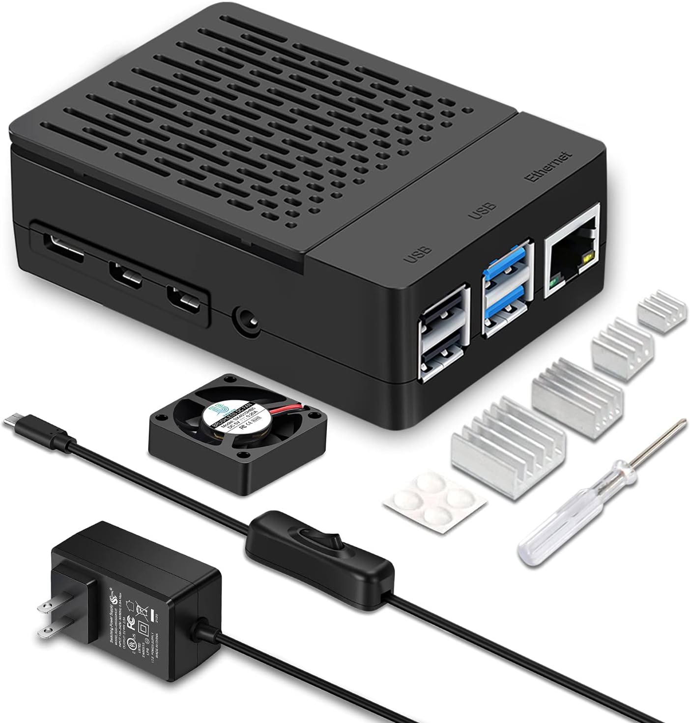 [20W 5V 4A] Raspberry Pi 4 Case, with iUniker 20W 5V 4A USB C Raspberry Pi 4 Power Supply with Switch Heatsink 40mm Cooling Fan for Pi 4 4 8gb/4gb/2gb