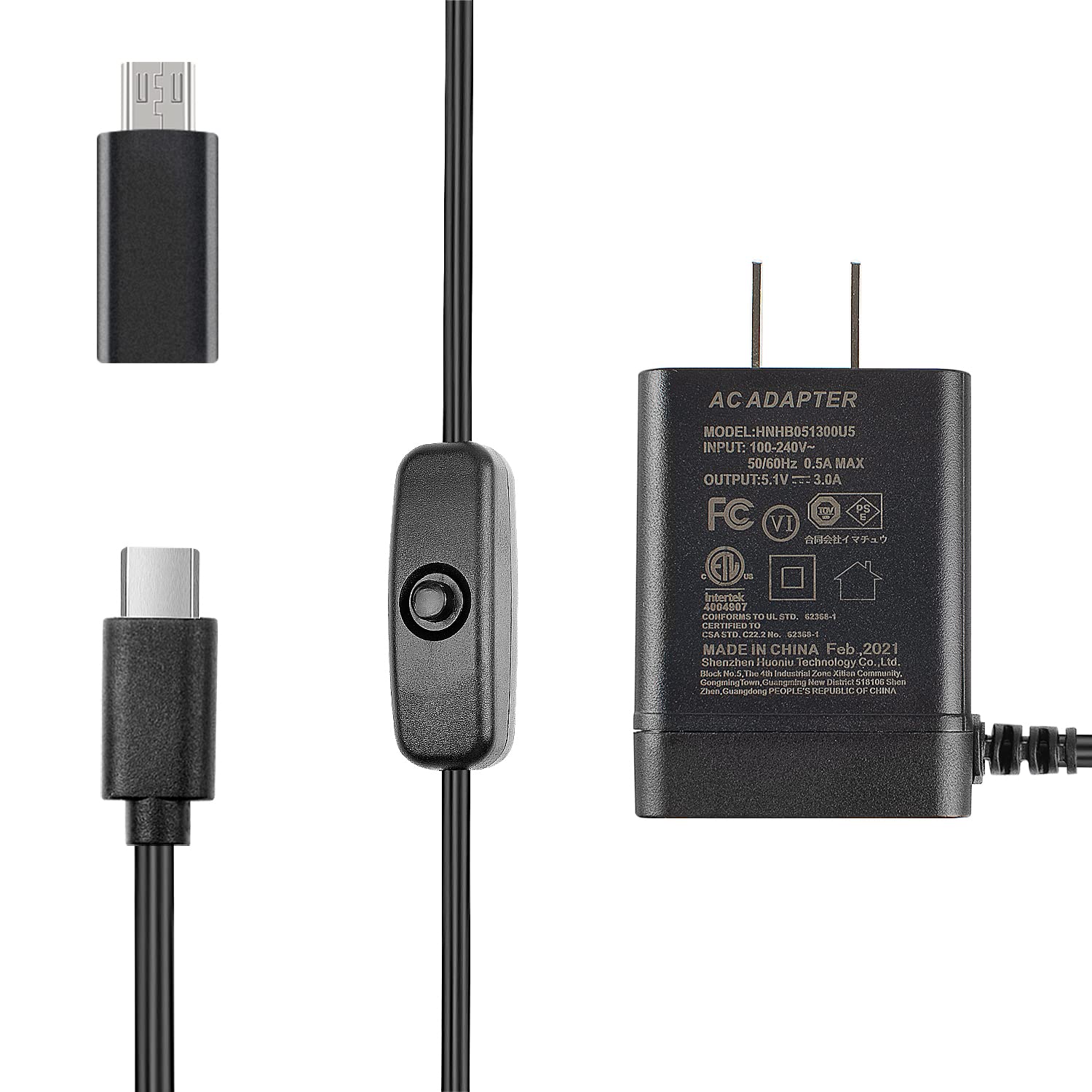 Smraza 5.1V 3A Power Supply Compatible with Raspberry Pi 4 ON/Off Switch, USB-C Pi 4 Charger Raspi 4B Adapter for Raspberry Pi 4 Model B 1GB 2GB 4GB 8GB Version