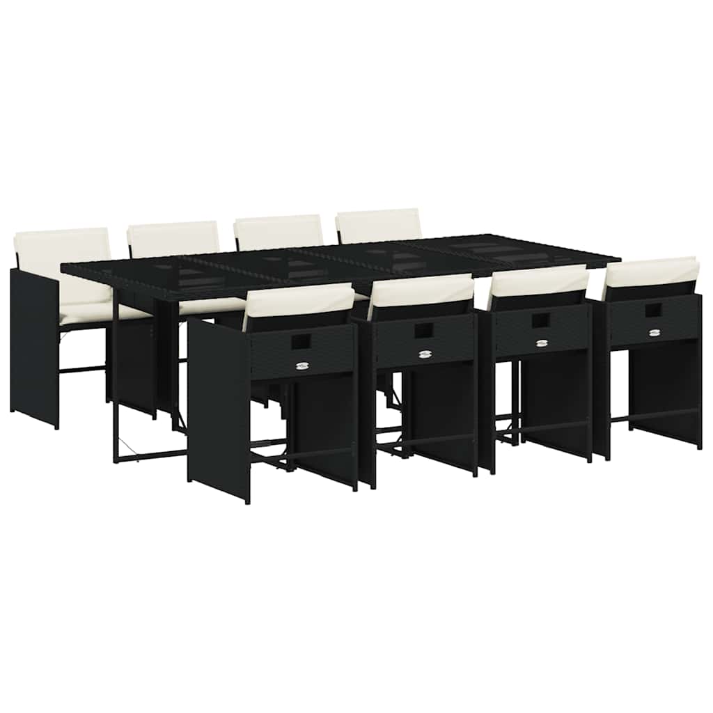 9-tlg. Garten-Essgruppe mit Kissen Schwarz Poly Rattan