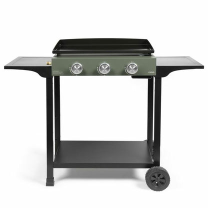 La plancha de cocina à gaz Livoo modèle DOC326 est un appareil conçu pour faciliter la préparation des aliments dans des espaces flexibles avec une grande autonomie. Elle dispose de trois brûleurs offrant une répartition uniforme de la chaleur, permettant de cuisiner plusieurs plats simultanément avec un contrôle indépendant de chaque feu, optimisant ainsi temps et efficacité. Sa structure intègre un chariot mobile facilitant son déplacement et son installation en extérieur ou dans des zones de cuisine nécessitant mobilité, tandis que son association de couleurs vert et noir lui confère un aspect moderne et fonctionnel adapté à divers environnements. Cette plancha à gaz est idéale pour un usage domestique ou semi-professionnel, grâce à son système de combustion efficace et sa configuration pratique, pensée pour offrir stabilité et confort lors de la manipulation en cuisson. Son design robuste et compact garantit un bon équilibre entre performance et maniabilité, convenant à ceux qui recherchent un appareil polyvalent capable de supporter de longues sessions de cuisson sans difficulté. En résumé, la plancha Livoo DOC326 représente une solution complète pour cuisiner en plein air ou dans des espaces raccordés au gaz, combinant mobilité, puissance et durabilité en un seul produit.
