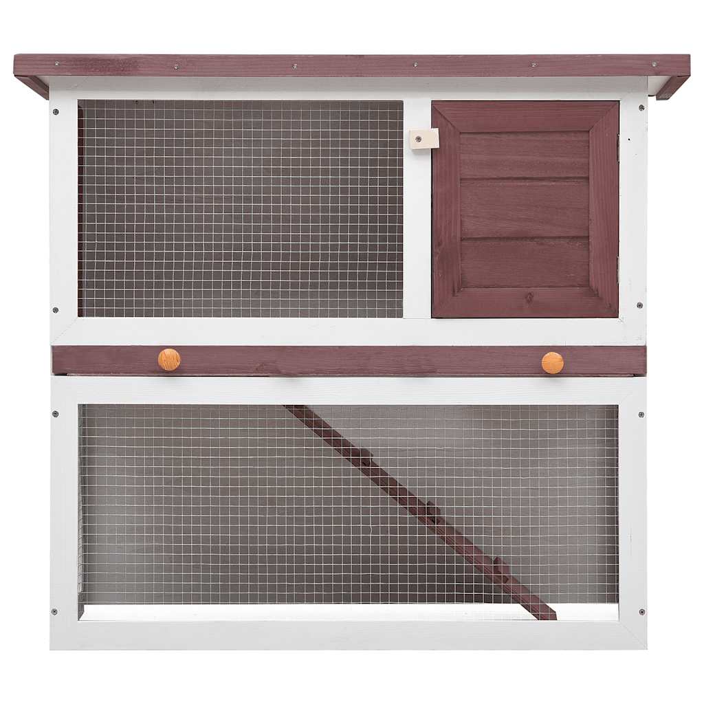 Dieser hochwertige Kleintierstall bietet einen gemütlichen Platz zum Halten von kleineren Haustieren, insbesondere von niedlichen Kaninchen. In diesem Kaninchenstall können Kleintiere spielen, sich frei bewegen oder sich einfach nur geborgen und sicher fühlen. Der Kaninchenstall bietet Ihren kleineren Haustieren viel Platz zur Bewegung, während das dichte Drahtgitter unartiges Verhalten und unvorhergesehene Unfälle vorbeugt. Außerdem ermöglicht die Konstruktion aus Drahtgitter die sichere Überwachung der Haustiere und die notwendige Luftzirkulation. Der Kaninchenstall ist aus hochwertigem Holz hergestellt, wodurch eine hohe Stabilität und eine lange Nutzungsdauer gewährleistet wird. Die grüne Dachpappe hält die Tiere sicher vor Niederschlägen geschützt und das gemütliche Räumchen wird zum perfekten Schlafkomfort beitragen. Das aufklappbare Dach kann geöffnet werden, dadurch können Sie Ihre Haustiere einfach herausholen oder hereintun. Eine einfach begehbare Stiege stellt die Verbindung zwischen dem Unter- und dem Obergeschoss dar. Ein herausziehbares Schubfach erleichtert die Reinigung des Käfigs und die Tür kann einfach durch einen Schubriegel geschlossen werden. Dieser Kaninchenstall aus Holz ist perfekt für kleinere Haustiere. Wichtiger Hinweis: Wir empfehlen, den Kaninchenkäfig unter Schutz zu stellen, um ein längere Lebensdauer zu dauern.
