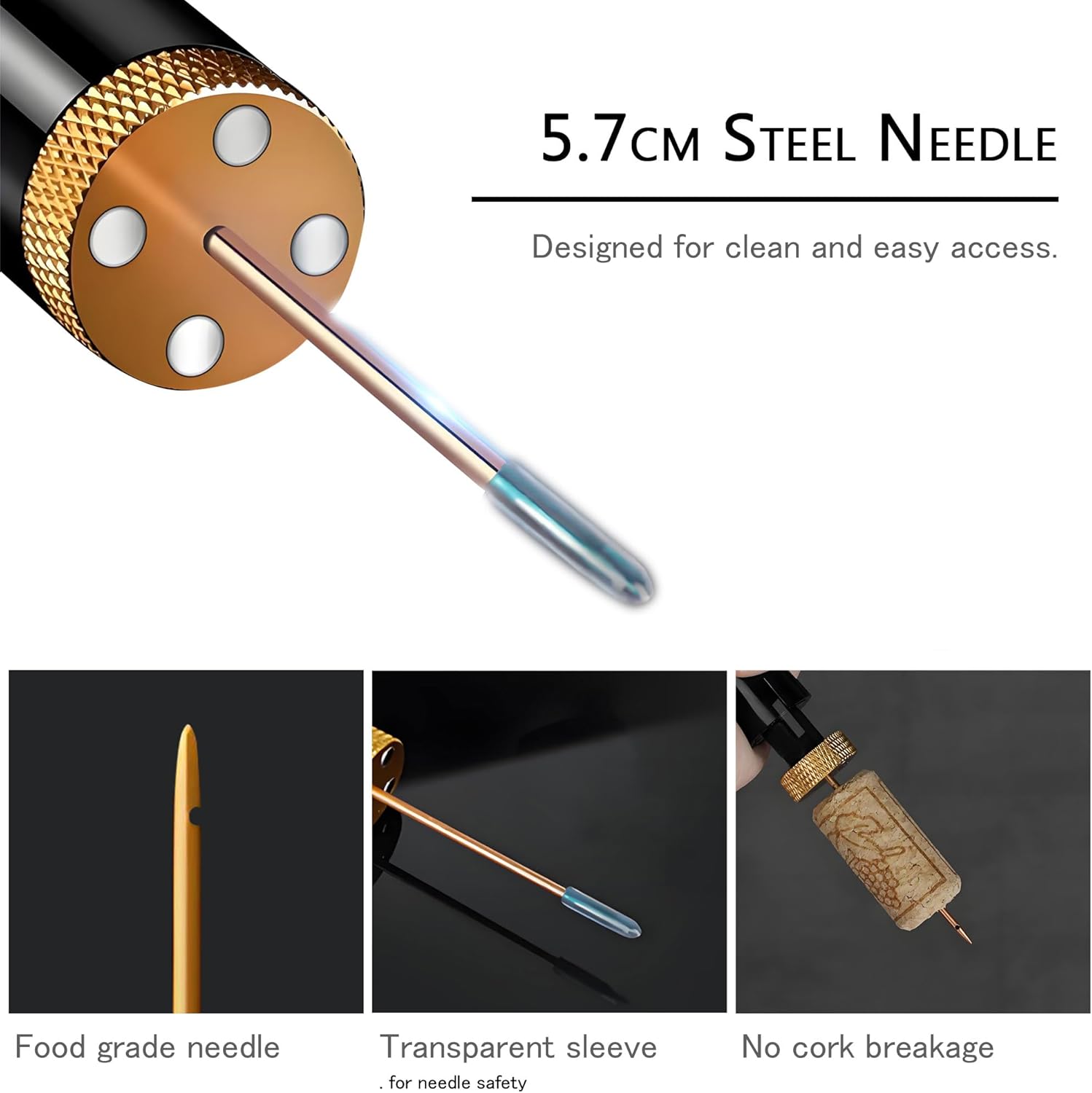 - [ 7S Efficient Air Pump Wine Opener ] This cork remover adopts the vacuum pressure principle, just slide the needle in, pull it out a few times and the cork comes out.Opening the bottle faster and labor-saving.Only 7s you can remove the cork.