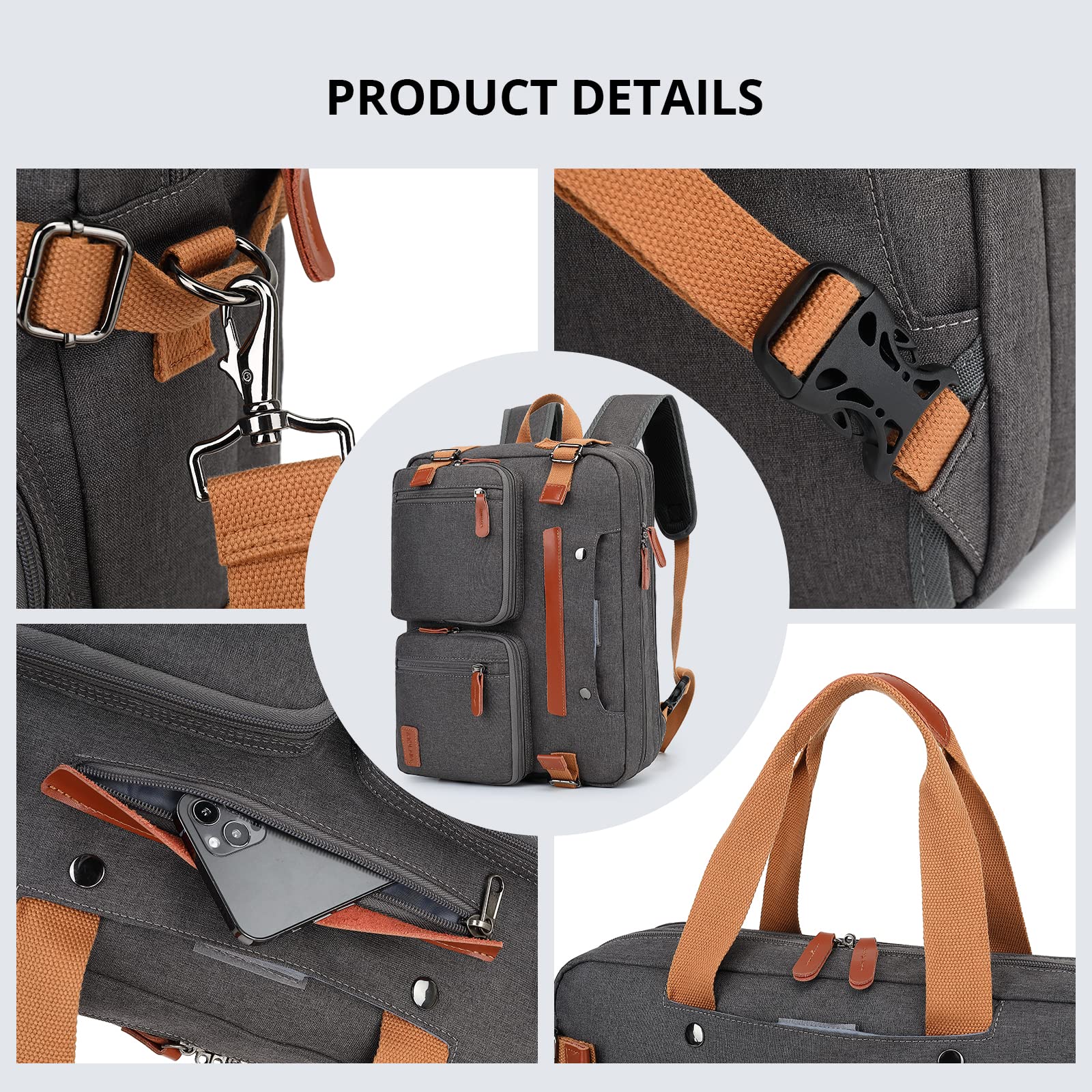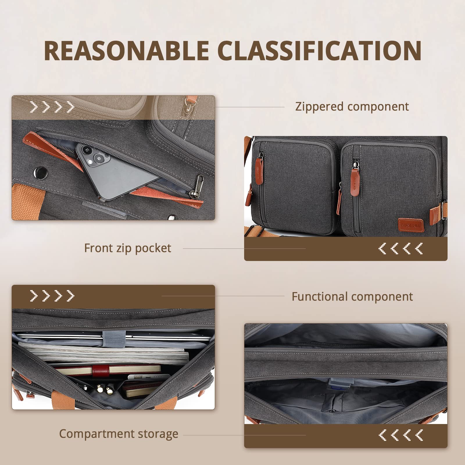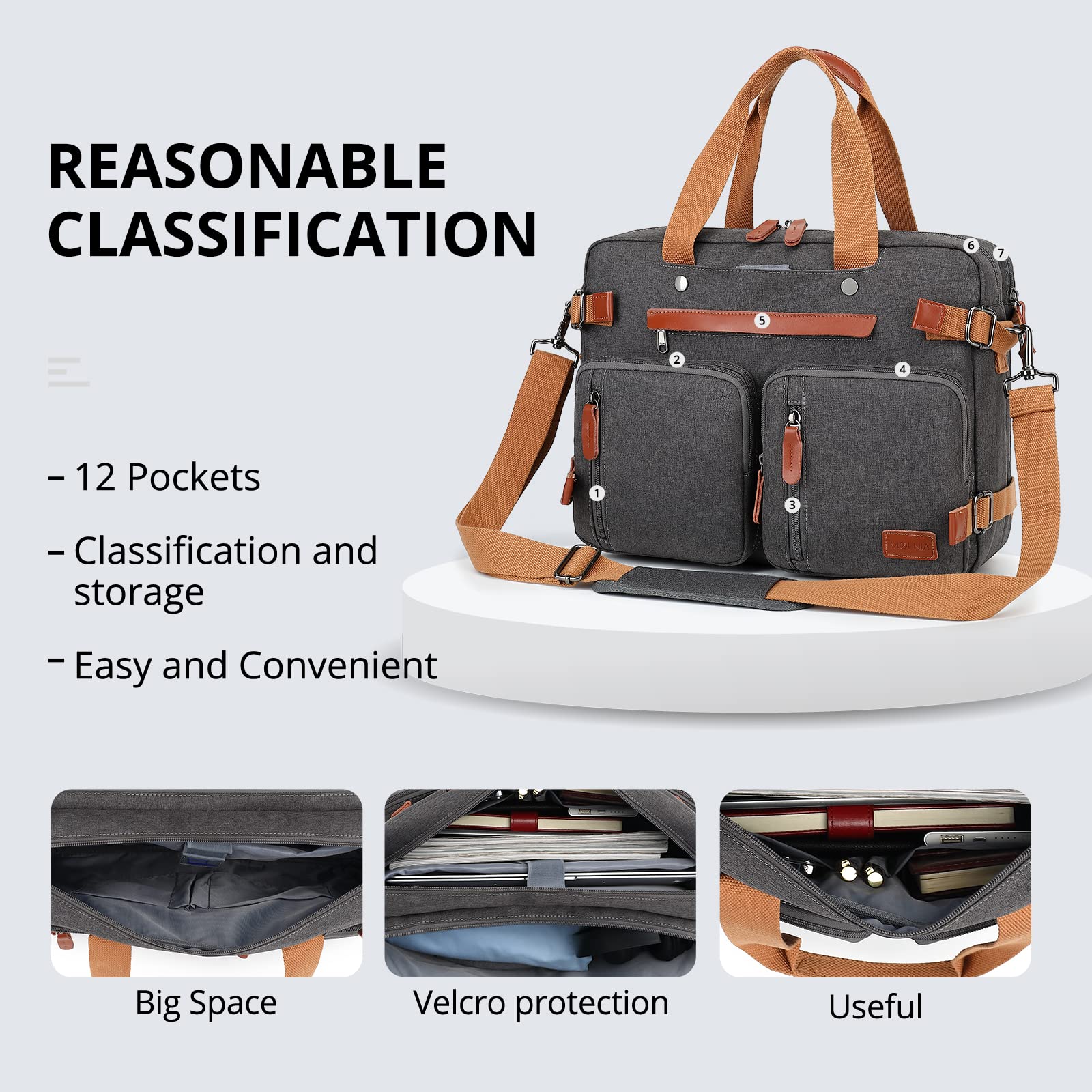 MOLNIA 3 in 1 Laptop Bag for Men, 17.3 Inch Work Bags for Men, Laptop Backpack, Briefcases, Messenger Bag, Computer Bags for Laptops for Men Women, Black
