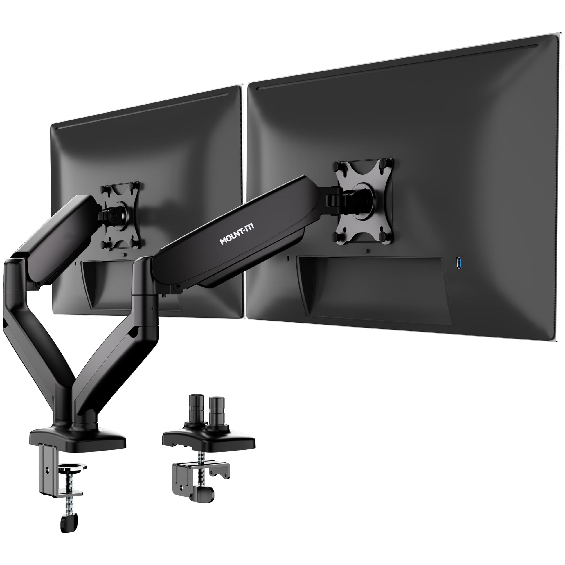 Upgrade your workspace with the Mount-It! Dual Monitor Desk Mount, the perfect solution for professionals, gamers, content creators, software developers, and remote workers who need an ergonomic, clutter-free setup. Whether you're analyzing data, designing graphics, or multitasking across multiple applications, this mount enhances productivity and reduces neck and eye strain. Supporting two screens up to 32 inches and 17.6 lbs per arm, this VESA-compatible monitor mount provides superior flexibility, thanks to independent gas spring arms that allow effortless height adjustments.