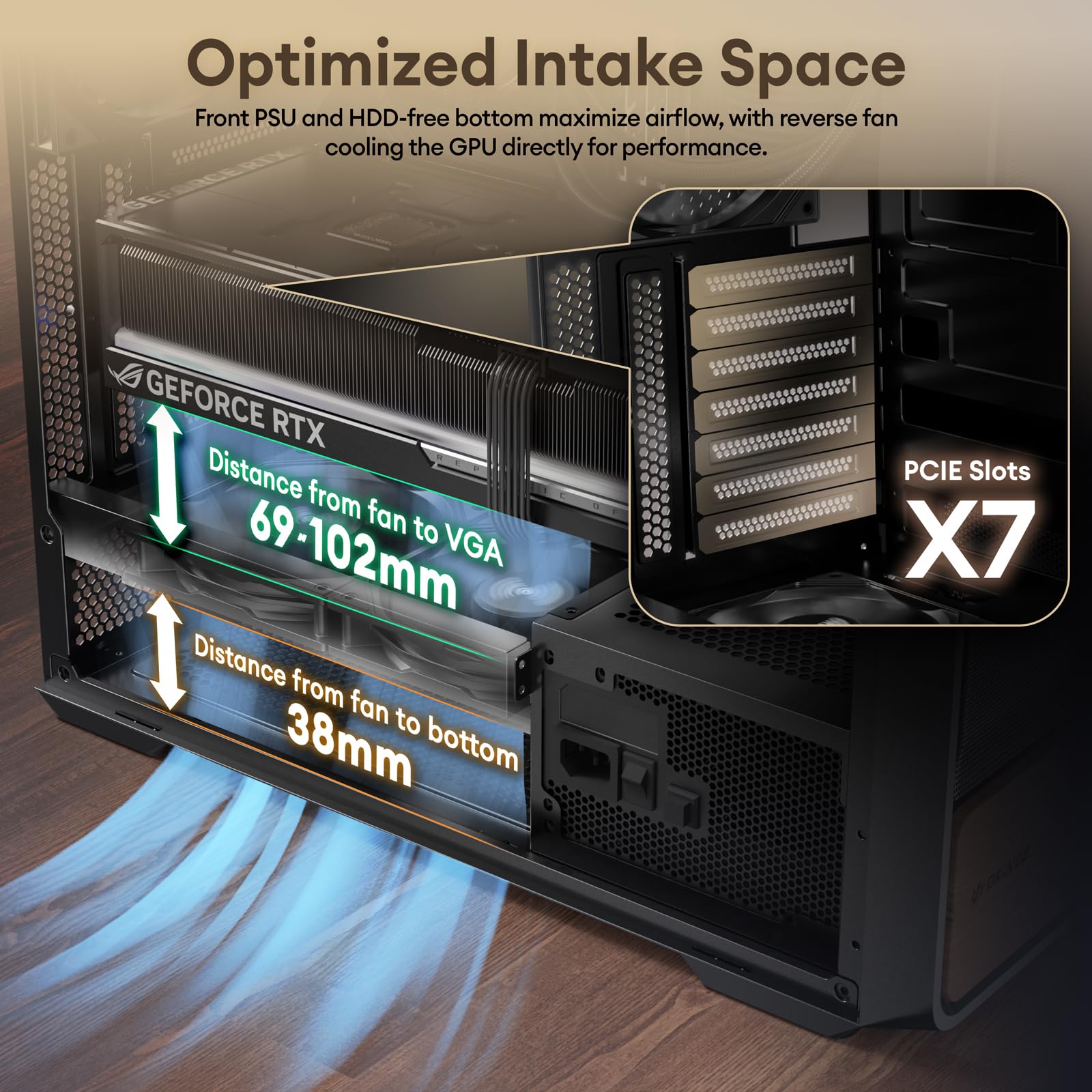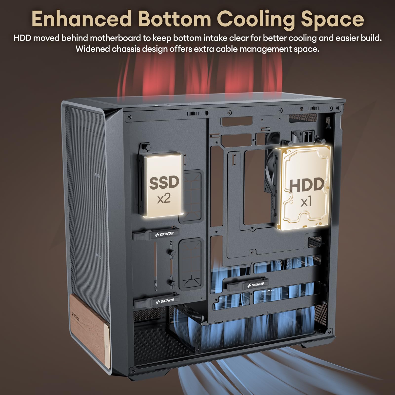 Okinos Air Cross, Genuine Walnut Wood ATX Case, 3×140mm PWM Fan & 2x120mm Reverse PWM Fan Pre-Installed, Airflow Optimized Mesh Panels, Back-Connect Motherboard Compatible, Mid Tower PC Case, Type C