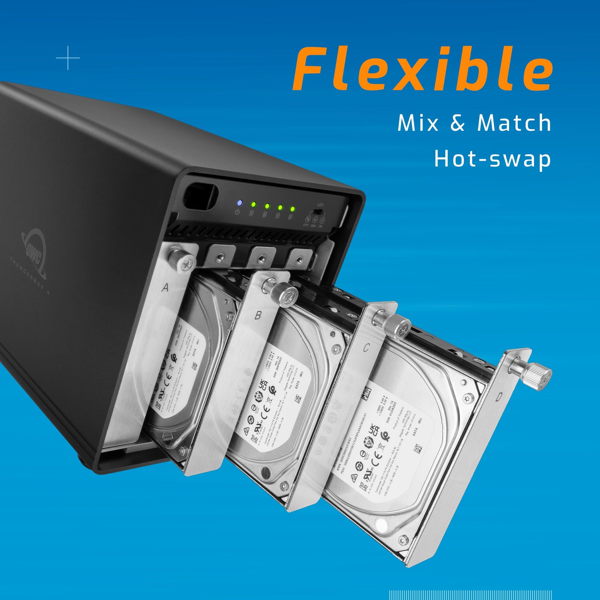 ThunderBay 4, OWC's flagship 4-bay RAID ready powerhouse is bigger and faster than ever before. Now with the unbelievable performance of Thunderbolt 3 - up to 1527MB/s sustained performance - it's the ultimate workhorse external storage solution. Not only faster, the new ThunderBay 4 Thunderbolt 3 is now natively compatible with both 2.5" and 3.5" drives, and with a redesigned chassis, it's even cooler and quieter too. Designed with performance in mind and engineered to harness the power of Thunderbolt 3, ThunderBay 4 is an incredibly flexible external solution with the throughput to support multi-stream compressed 4K video and other bandwidth-intensive operations. ThunderBay 4 is highly configurable to perfectly match your performance needs. Choose between traditional hard drives or Solid State Drives. Use each drive independently, or in the RAID configuration of your choice for the optimal balance of performance and data-redundancy. Get the most out of your storage, take the brakes off your workflow, and do more with a ThunderBay 4.