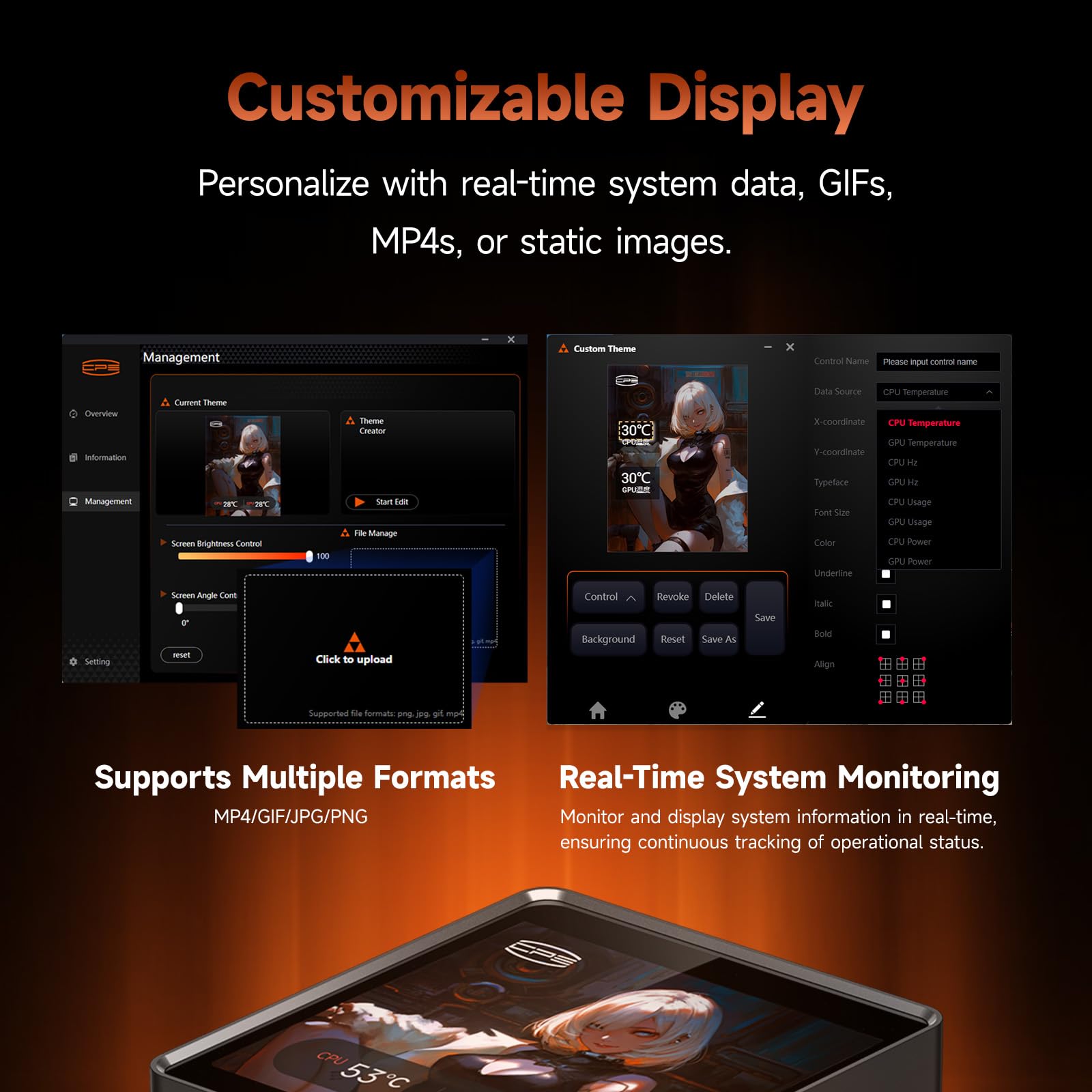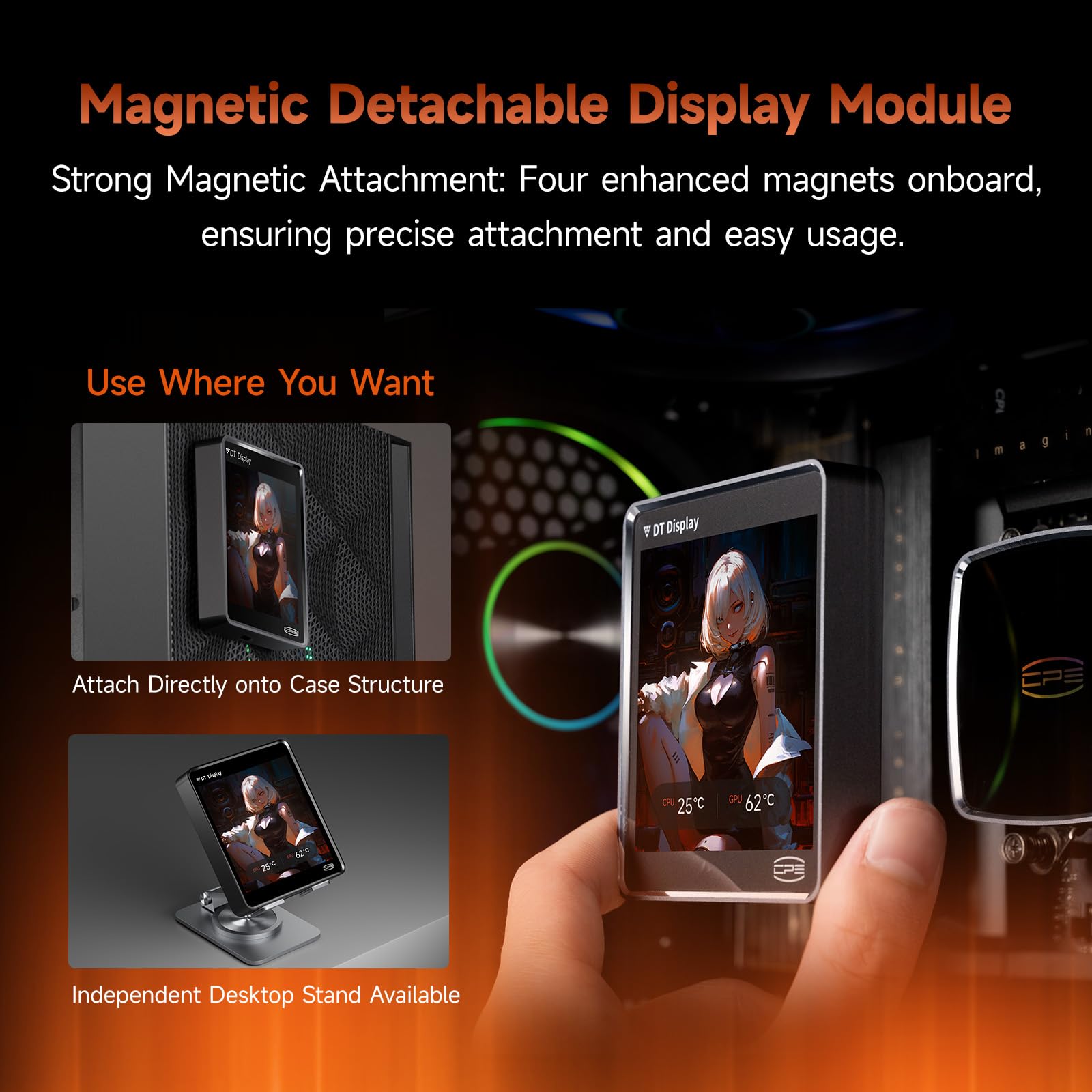 - Magnetic Detachable Display Module: Enjoy flexibility with a magnetic attachment that allows easy positioning on your case structure or independent desktop stand.