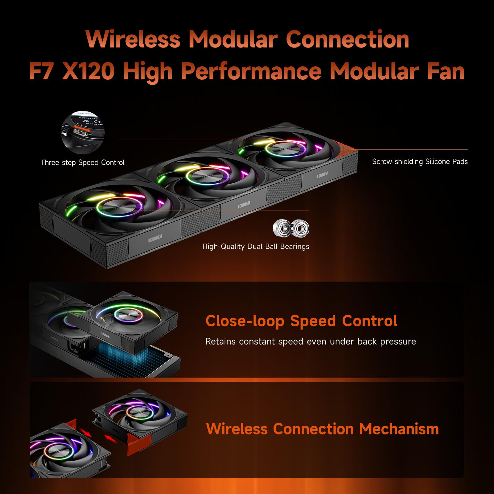 - High-Performance Cooling: Equipped with the F7 X120 fan, featuring a 28mm thickness, increased airflow, and reduced noise. The dual ball bearings ensure a long-lasting and quiet operation.
