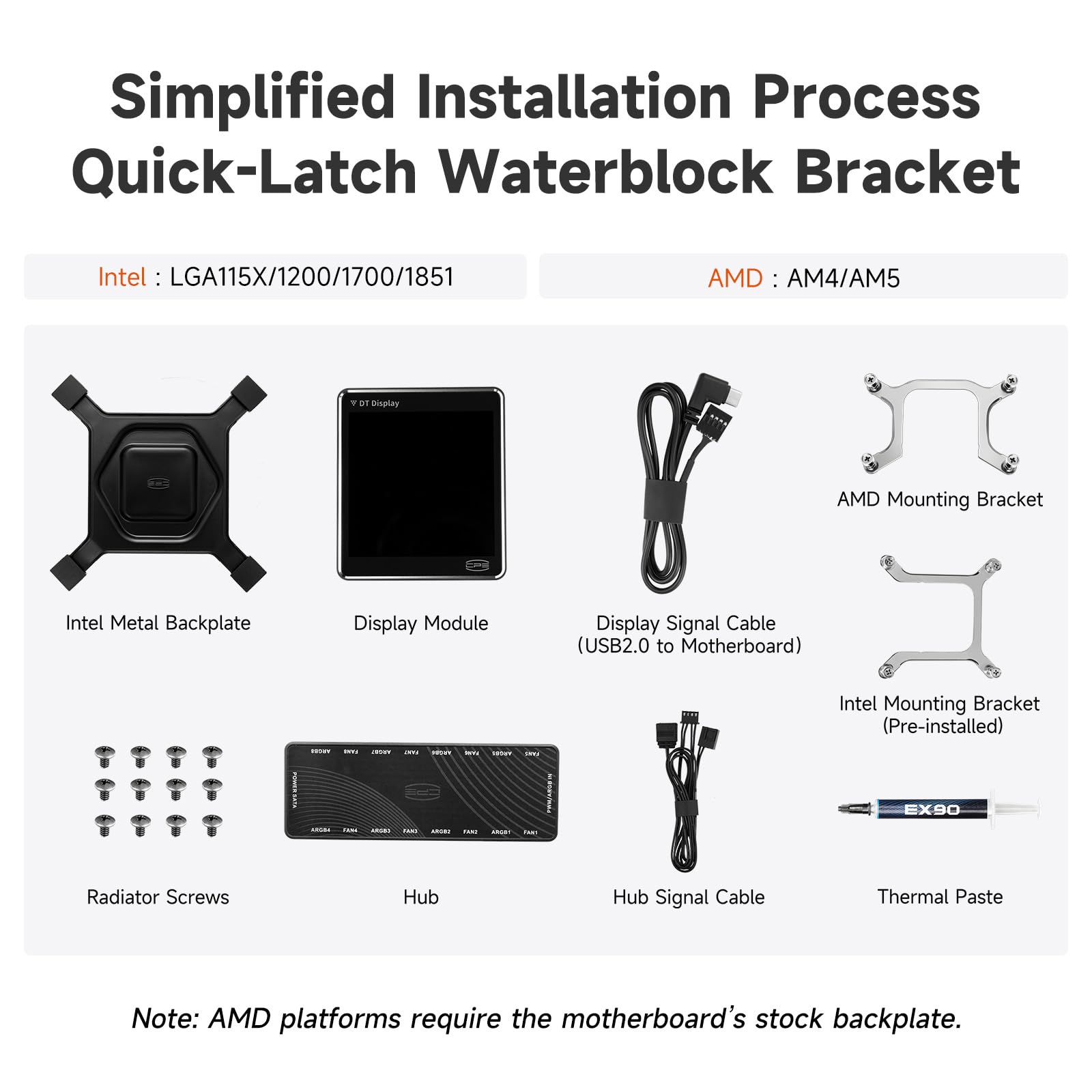 - Advanced Ceramic Bearing Pump: Designed for high-end processors, the ceramic bearing pump reduces noise while maximizing cooling efficiency for optimal performance.