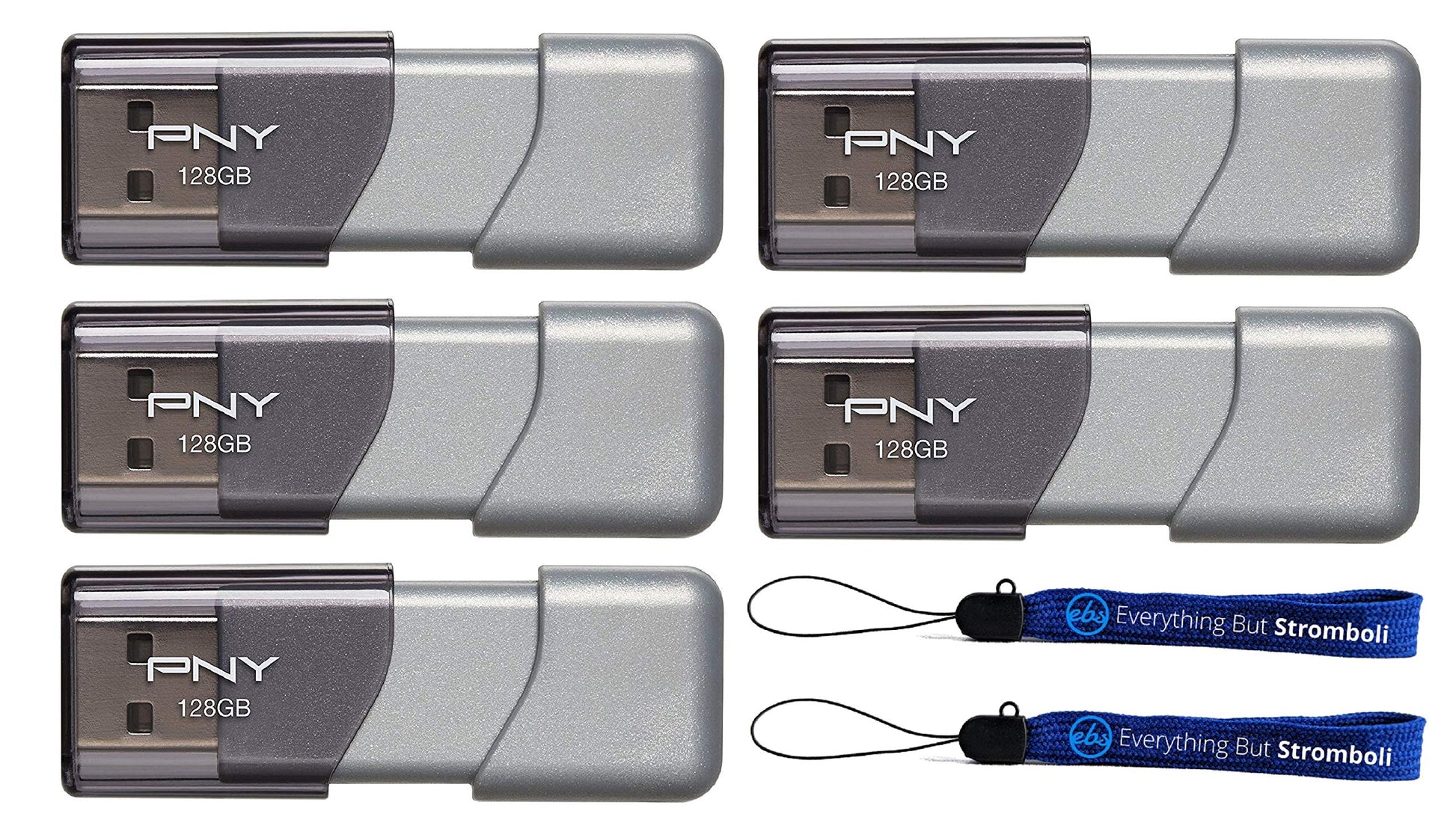The PNY Elite Turbo Attache 3 Flash Drive has USB 3.0 speeds that will maximize your performance when needed to transfer data quickly (10x faster than USB 2.0) and efficiently. Perfect for high resolution photos and videos and large files this flash drive lets you leave your laptop at home but still take your vast amounts of content with you to share with family and friends.. The sliding cap design means you won’t ever lose the cap but still have protection for your flash drive. Bundle includes (5) 128GB PNY Elite Turbo Attache 3.0 Flash Drives and (2) Everything But Stromboli (TM) Lanyards so you can easily keep track of your valuable flash drive!