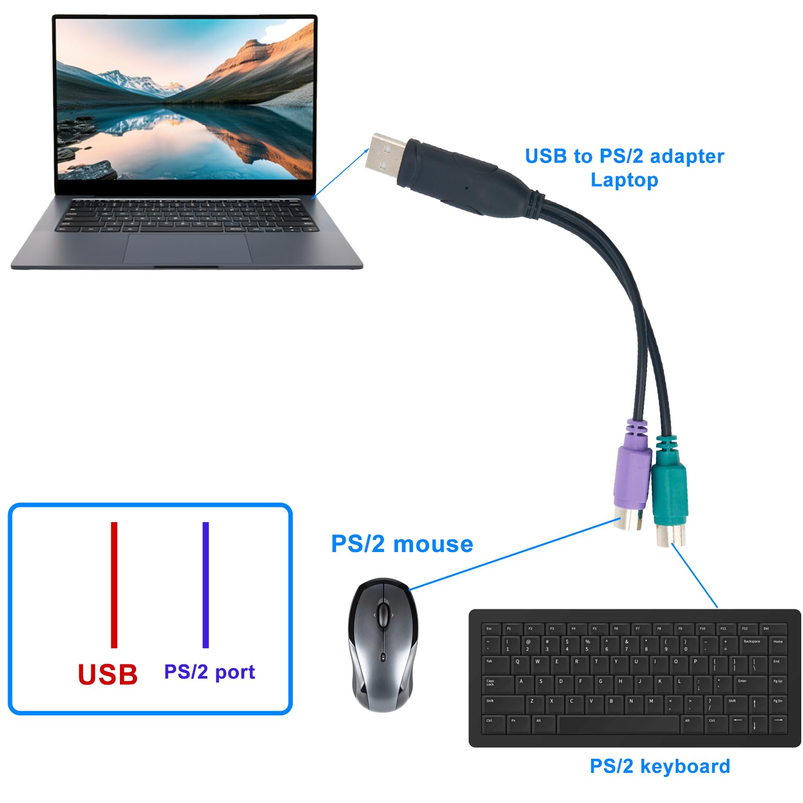PS2 to USB Adapter, Automatic Installation USB Keyboard Monitor Laptop Barcode Scanner Mouse Adapter Converter