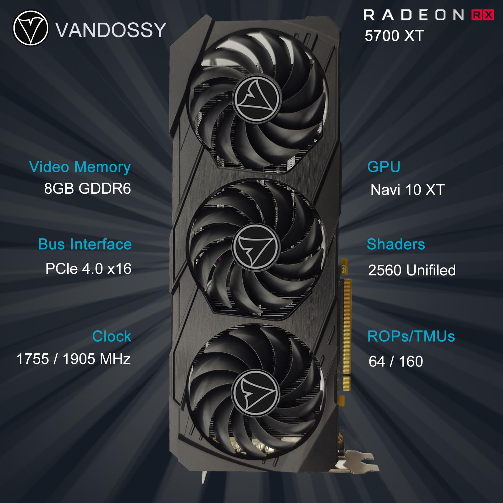 Radeon RX 5700 XT Graphics Card, 8GB GDDR6 256-Bit RDNA Architecture 1755/1905 MHz (Base/Boost Clock) DirectX 12 HDMI DP PCIe4.0 2K PC Gaming Video Card for Office Gaming (RX 5700 XT - Triple Fan)