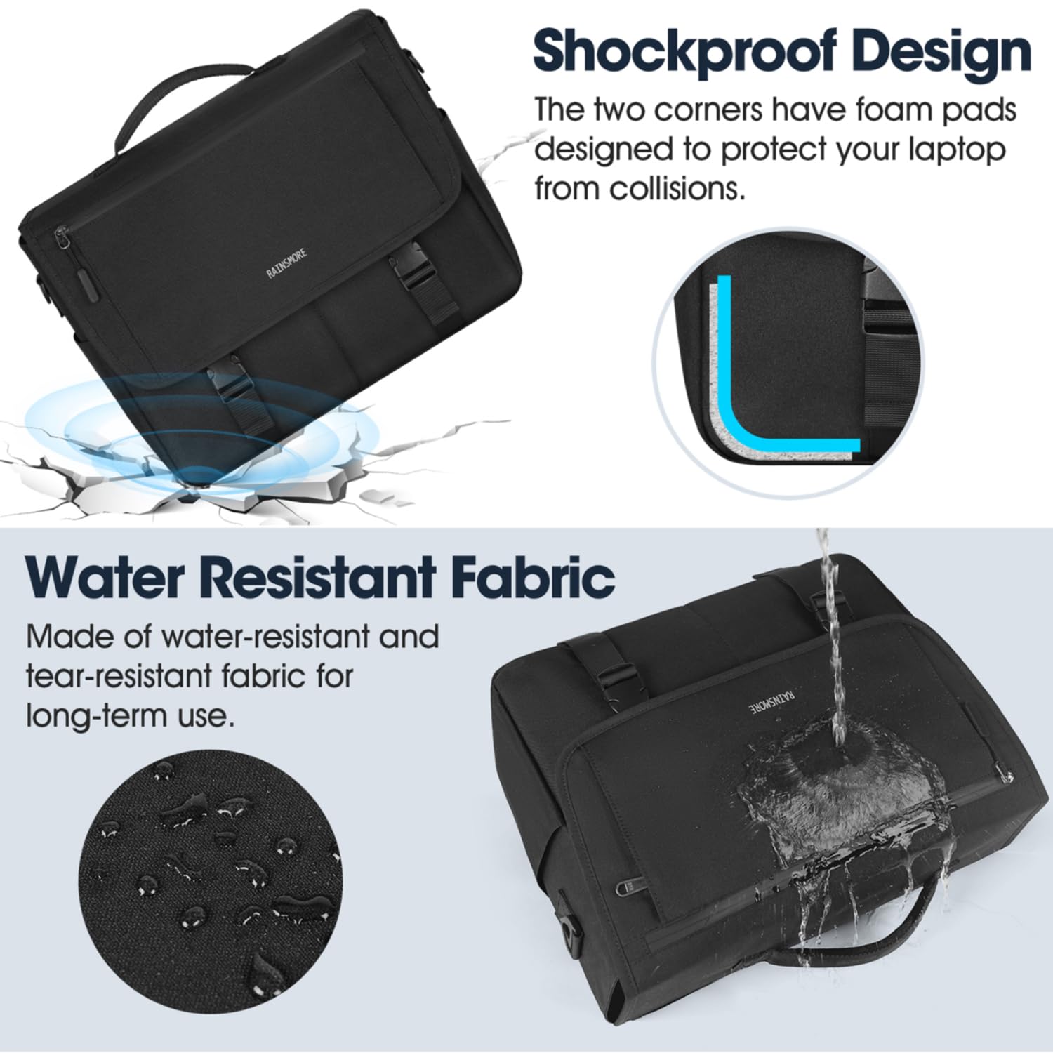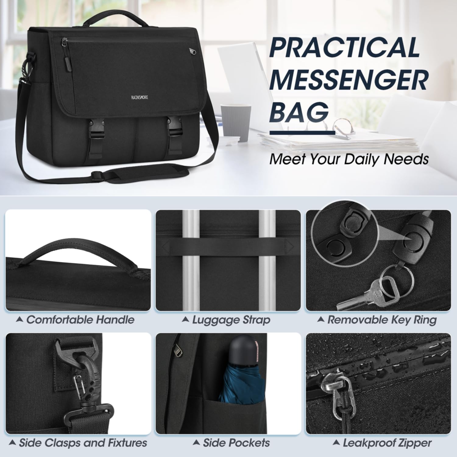 RAINSMORE Messenger Bag for Men Messenger Bag 15.6 Inch Water Resistant Laptop Bag Casual Satchel Bags for Men Large College Computer Bag Office Work Briefcase Fashion Crossbody Shoulder Handbag Black