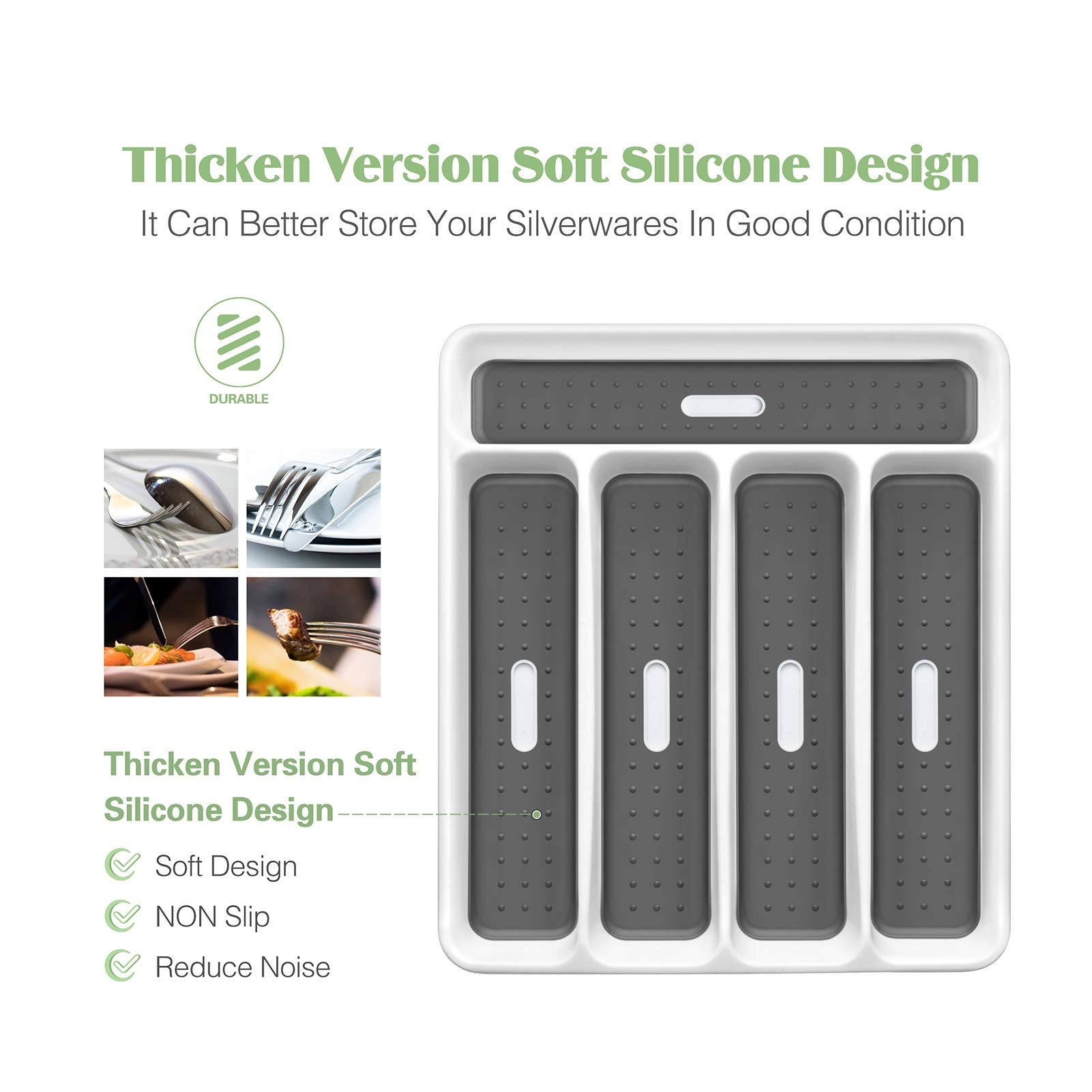 RayPard 24-Piece Silverware Set, Flatware Set Mirror Polished, Dishwasher Safe Service for 4, Include Fork/Spoon with 5-Compartment Non Slip Silverware Drawer Organizer Box Tray