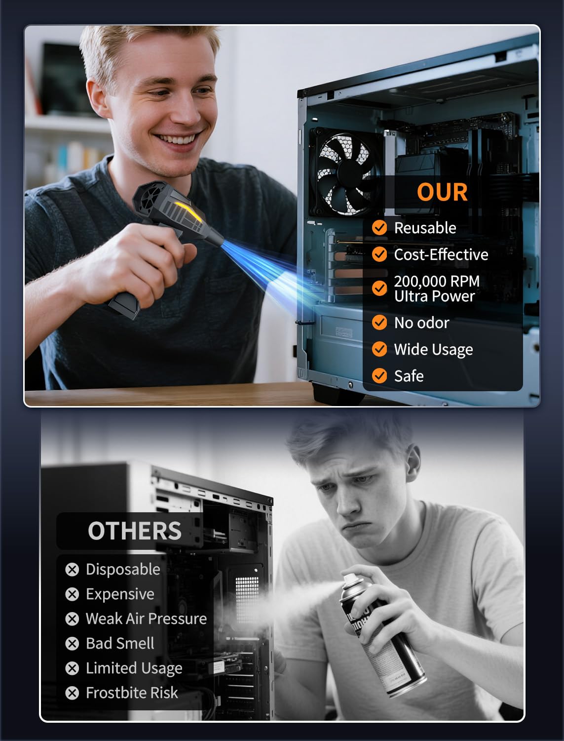 RUNLANE Compressed Air Duster, 200000RPM Electric Air Duster with Light, 4-Gear Adjustable Cordless Dust Blower for Computer, Keyboard, Outdoor, Home and Car (FB09-Black)