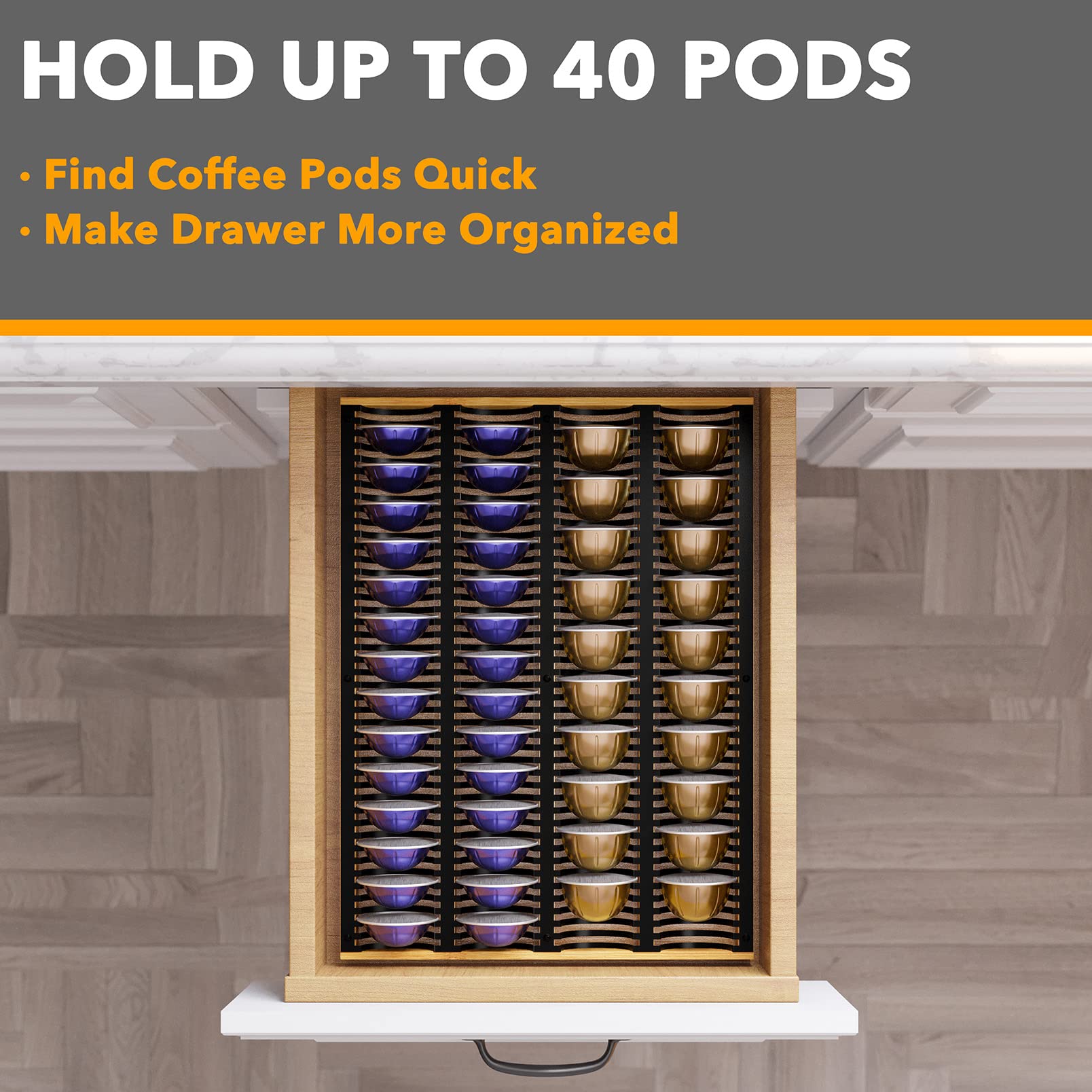 SpaceAid Coffee Pod Holder Drawer Organizer for Nespresso Vertuo Capsule, Bamboo Holder Tray Storage for Nespresso Vertuo, Compatible with 40 Big or 52 Small Vertuoline Pods (Drawer Insert)