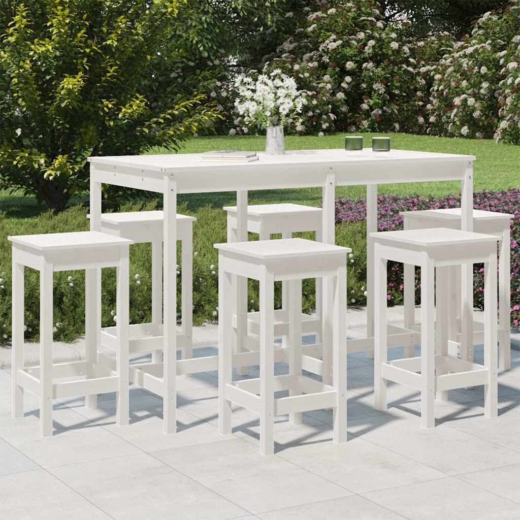 7-tlg. Gartenbar-Set Weiß Massivholz Kiefer