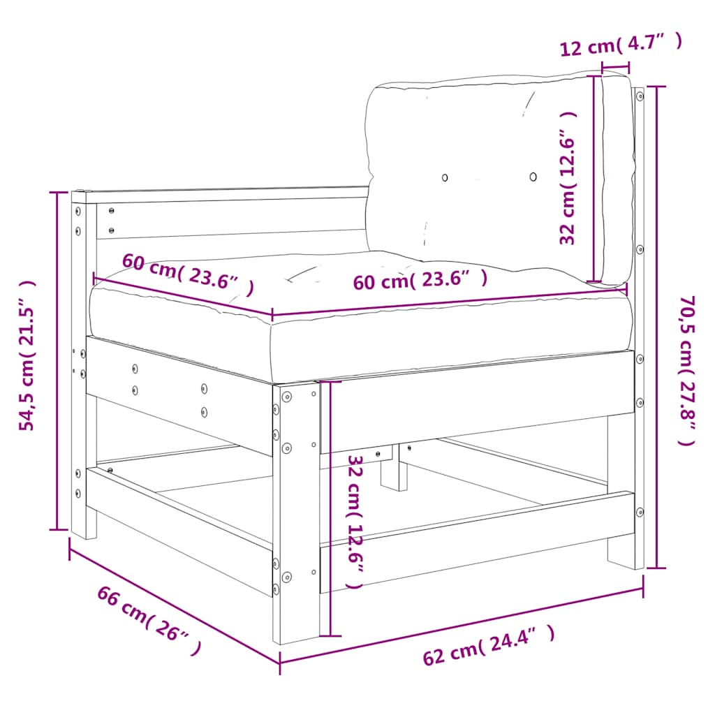 Dieser Gartenstuhl aus Holz, der sich durch sein Latten-Design und weiche Kissen auszeichnet, ist eine tolle Ergänzung zu deinem Garten, Innenhof oder deiner Terrasse, um gemütliche Stunden mit deiner Familie oder deinen Freunden zu verbringen. Massives Kiefernholz: Massives Kiefernholz ist ein wunderschönes Naturmaterial. Kiefernholz weist eine gerade Maserung auf und die Aststellen verleihen dem Material seine charakteristische, rustikale Optik.Robuster und stabiler Rahmen: Dank des Holzrahmens ist der Sessel robust, stabil und für den täglichen Einsatz im Außenbereich geeignet.Bequem: Mit Rückenlehne und Armlehnen versehen, bietet der Gartenstuhl höchsten Sitzkomfort. Zum hohen Sitzkomfort trägt auch das dick gepolsterte Kissen bei.Modulares Design: Der Terrassenstuhl lässt sich flexibel und leicht umstellen. Du kannst ihn auch mit anderen modularen Elementen aus unserem Webshop kombinieren, um dein ganz persönliches Garten-Lounge-Set zusammenzustellen! Gut zu wissen:Damit deine Gartenmöbel lange schön bleiben, empfehlen wir dir, sie mit einer wasserdichten Hülle zu schützen.