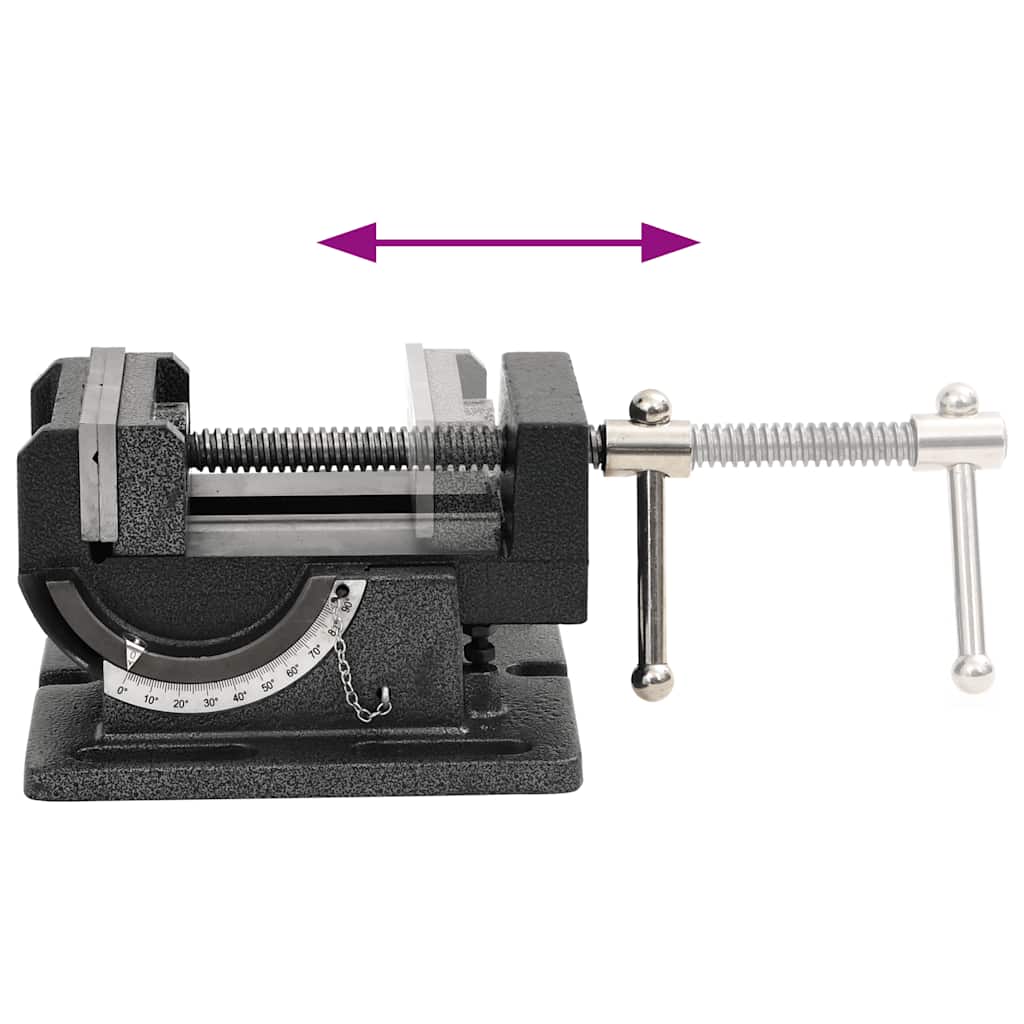 Dieser Schraubstock kann bis um 90 Grad gekippt werden und ist robust konstruiert. Dank seiner hervorragenden Spannkraft bewegt sich der Schraubstock beim Bohren oder Fräsen nicht. Hergestellt aus Gusseisen, ist der Schraubstock stark und robust. Dieser Schraubstock ist dank einem Neigungswinkel, der zwischen 0 und 90 Grad einstellbar ist, kippbar. Mittels eines Sicherungsstifts an der Kette, können Sie ihn jeden 15 Grad arretieren. Dieses Gerät verfügt auch über eine stabile Basis, die einfach an Ihrer Werkbank montiert werden kann. Es ist kompakt und leicht, wodurch es für auch den mobilen Einsatz geeignet ist.