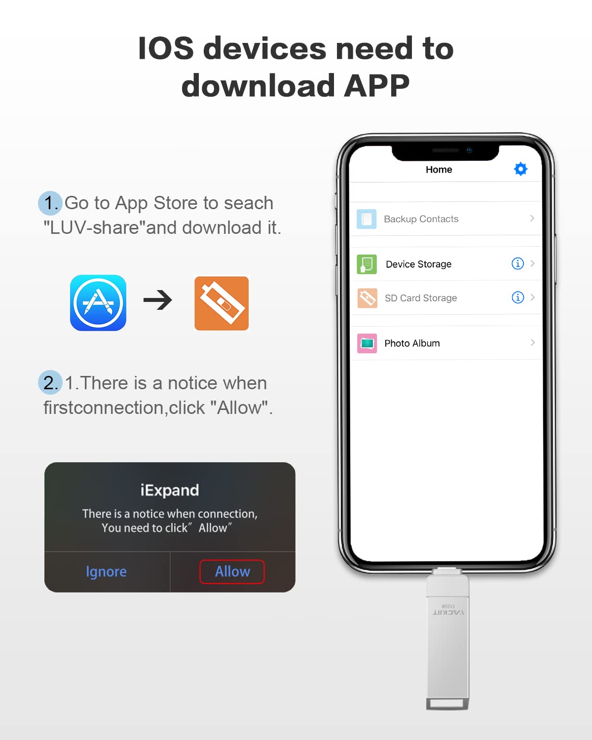 Photo Stick MFi Certified 128GB 3 in 1 USB Flash Drive for iPhone 15 14 13 12 22 Memory Stick for Photos and Videos Transfer Storage Backup