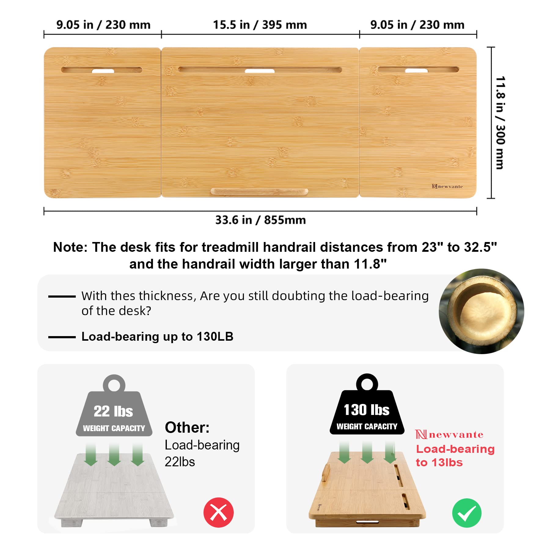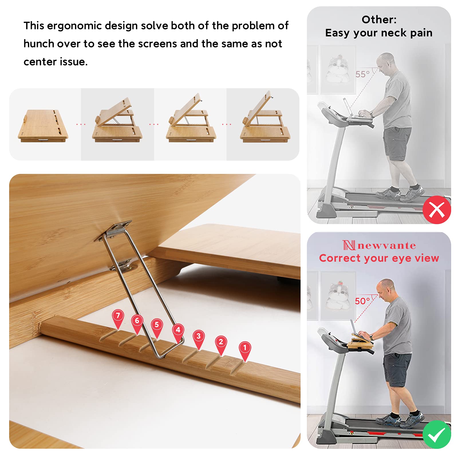 Nnewvante Treadmill Desk Attachment Bamboo Walking Laptop Holder Workstation Ergonomic Adjustable Desktop Laptop Tray for Treadmill