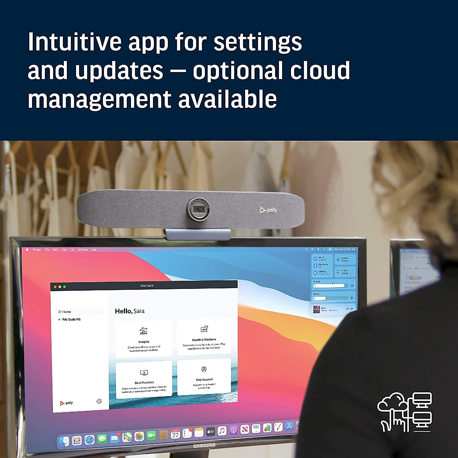 • Poly Lens Desktop App Included: The Poly Studio P5 web cam is supported by an intuitive app that lets you customize your video settings for your unique environment and get updates and practical tips. Maintain balance throughout your day with gentle health and wellness reminders.