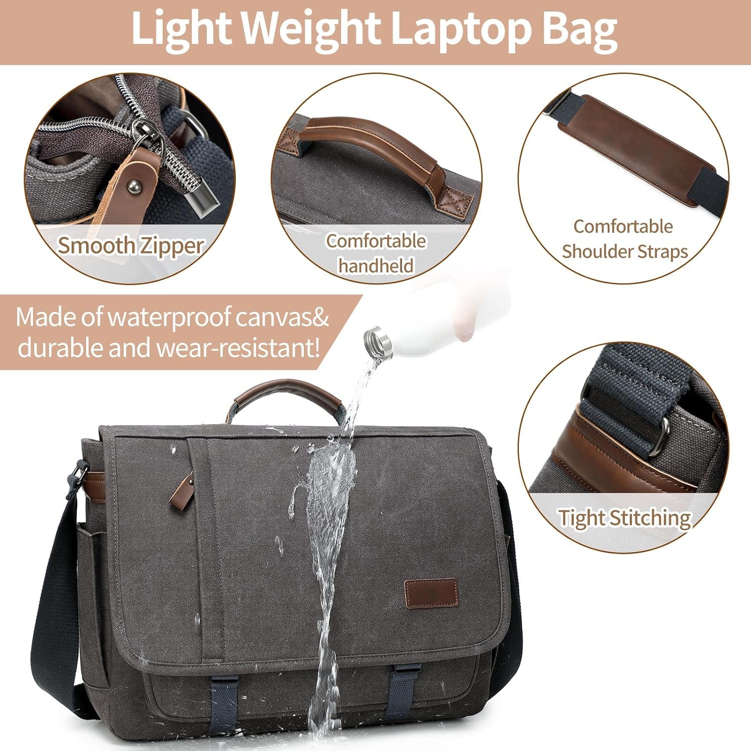 PPOBOW Canvas Messenger Bag for Men Waterproof Business Bags for Men Vintage Canvas Laptop Bag (Grey)
