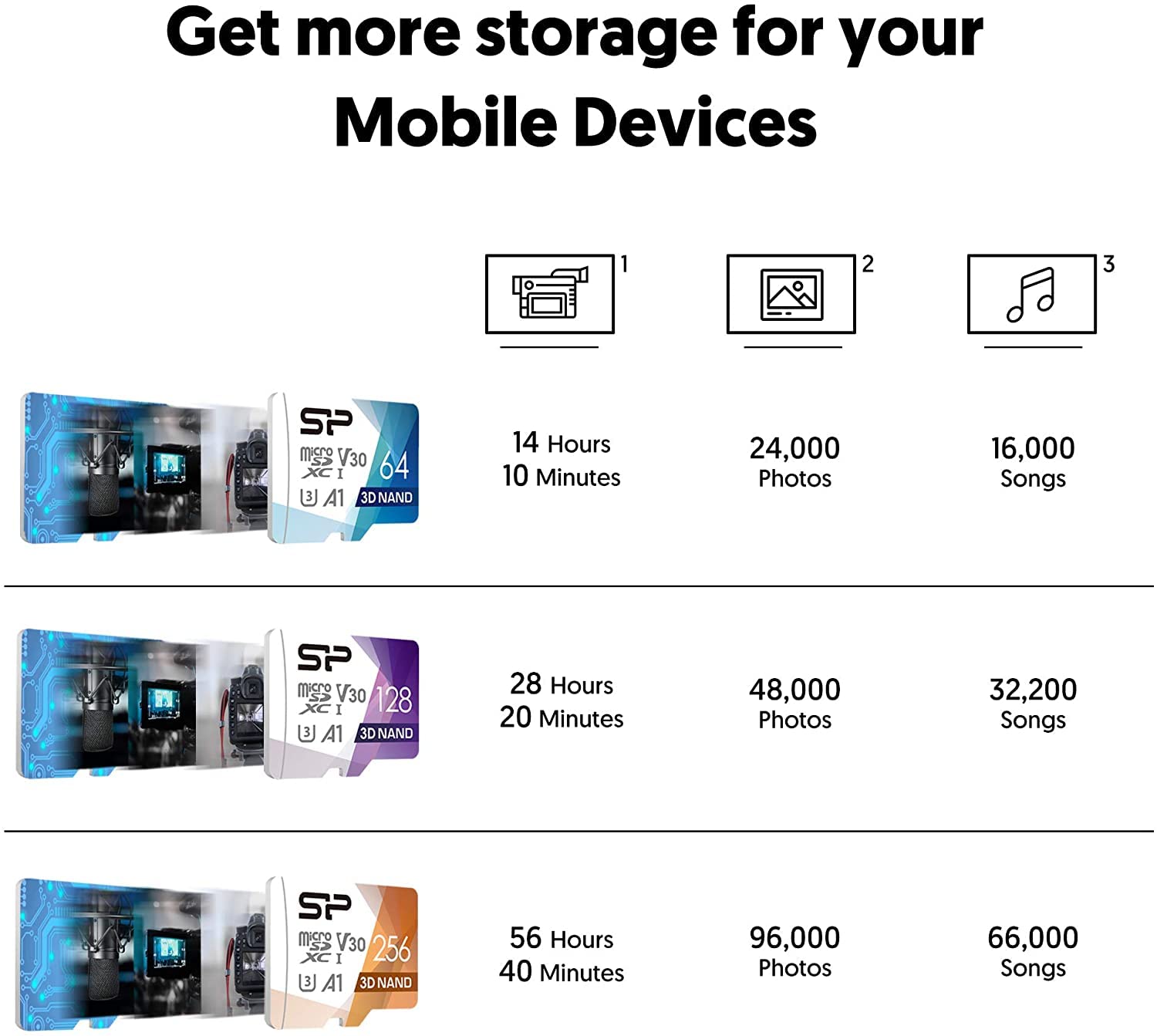 The Superior Pro Series memory cards feature the UHS-1 specifications that enable fast transfer speeds to save you more time when moving data from your card to other devices. Also, it supports Full-HD/ 4K video recording so that you can capture HD videos without annoying lags and dropouts. *To reach the maximum read/write speed, a UHS-I enabled and USB 3.0 reader or host device would be recommended. Ideal for Up-to-date Gadgets Equipped with the Class 10 speed, the Superior Pro microSD series can bring high-tech gears such as sports cameras into full play! You may also place it in some portable speakers for more appealing music. Waterproof, Shockproof, Temperature-proof and X-ray proof Even if you are doing outdoor activities in some extreme climate conditions, the Superior Pro series can still survive from water, shock and wide-temperatures storage ranging from -40ºC to 85ºC! Moreover, the Superior Pro series is immune to airport X-rays so there is no need to worry when travelling overseas. Add More Storage for Your Mobile Devices Hard to choose which one to delete? The Superior Pro microSD series is available from 64GB to 512GB so you can instantly free up the storage of your mobile devices.